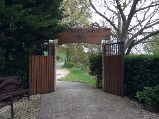 Have a bit of a blister on the back of my heel after changing the insole on my boot and it rubbed yesterday. Decided not to walk today and continued on by taxi. Had a guided tour of Pamploma and surrounds -even though I couldn’t understand much, but such a lovely taxi driver. Didn’t charge me extra and took me to see the iron statues so I wouldn’t miss out. Then he took me to Puenta la Reina where I am staying in a fantastic Albergue . Got a room for myself and three of my travelling mates (2texans and a pom). We have our own bathroom! Such luxury tonight! Unfortunately I will have to sleep on the top bunk as they deserve the lower beds after walking for 8 hours today.