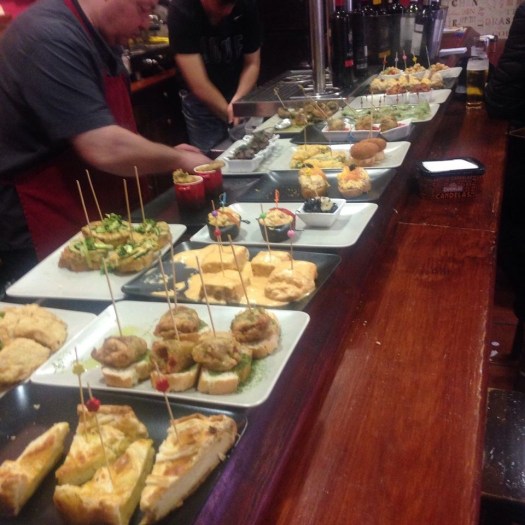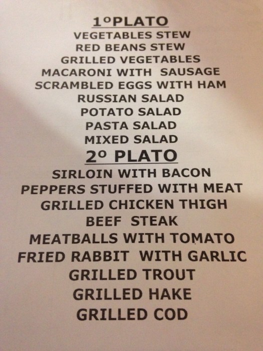 The last few days have all blended into one. The tapas, or pintxos, are beautiful. About 1euro each and you just keep eating till you are full. Really good way to taste the local food. Wine is really nice too and it is such a cheap way to eat. Below is a sample of the pilgrim menu which is usually 10 euro ( including dessert and wine) I have no idea why this photo of my bedroom appeared…sorry!