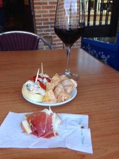 Don’t really have much to say about today though. Just more of the same scenery…it is the meseta. Gerard loves food, so he is good to hang out with and he knows what to order etc. we went to a little shop today and he bought all this yummy stuff. We have just eaten more tapas, drunk more wine and beer, and finished it off with chocolate and churros. I’m stuffed.