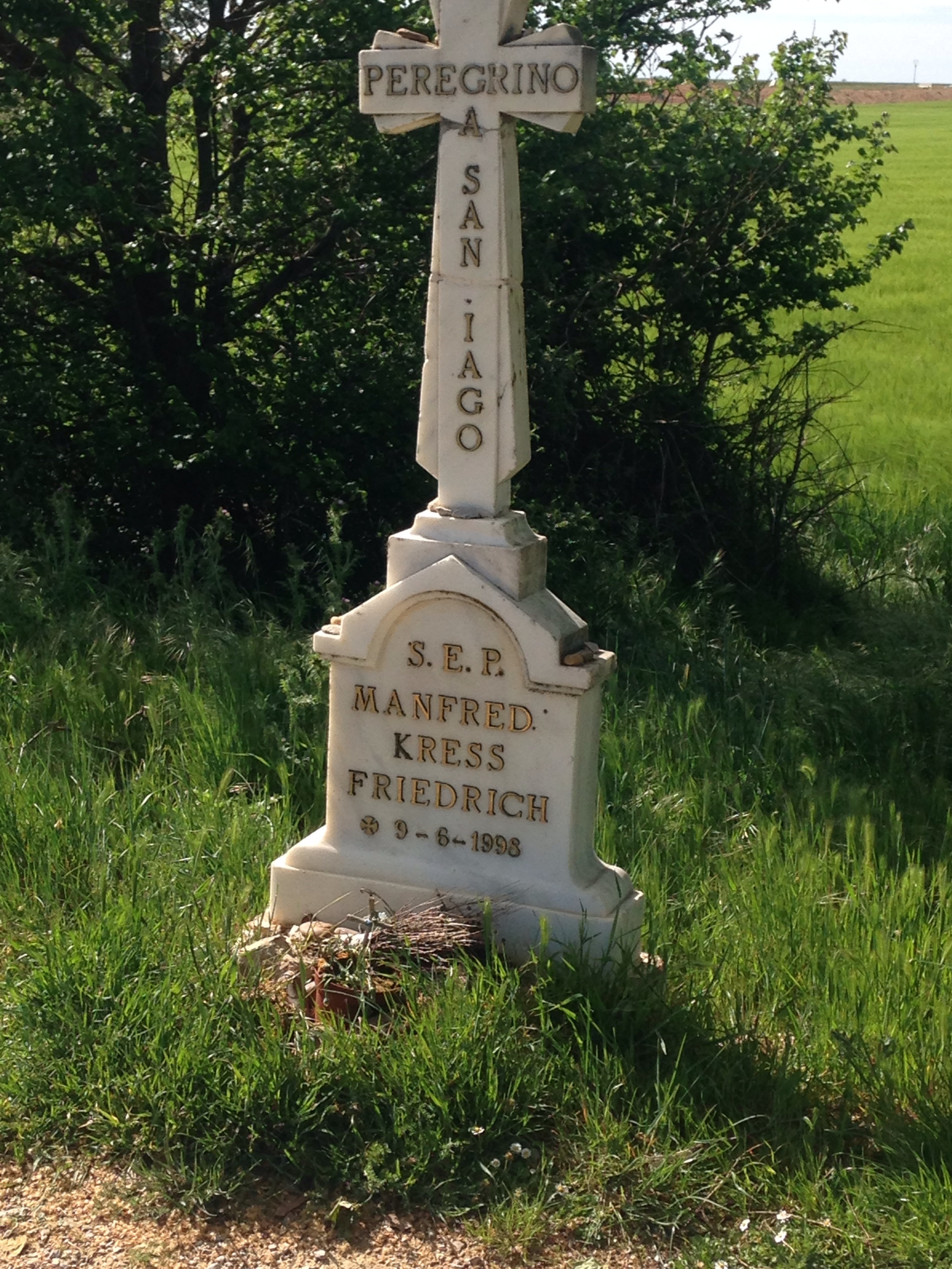 Today was hard. It was a long straight walk on a gravel path. Gerard walked on the bitumen road because it was easier to pull his cart! Scenery is much the same and I’m really buggered. Came across the Canadians I met on my first day, and two girls from Lightening Ridge.  Will probably reach Leon on Friday.