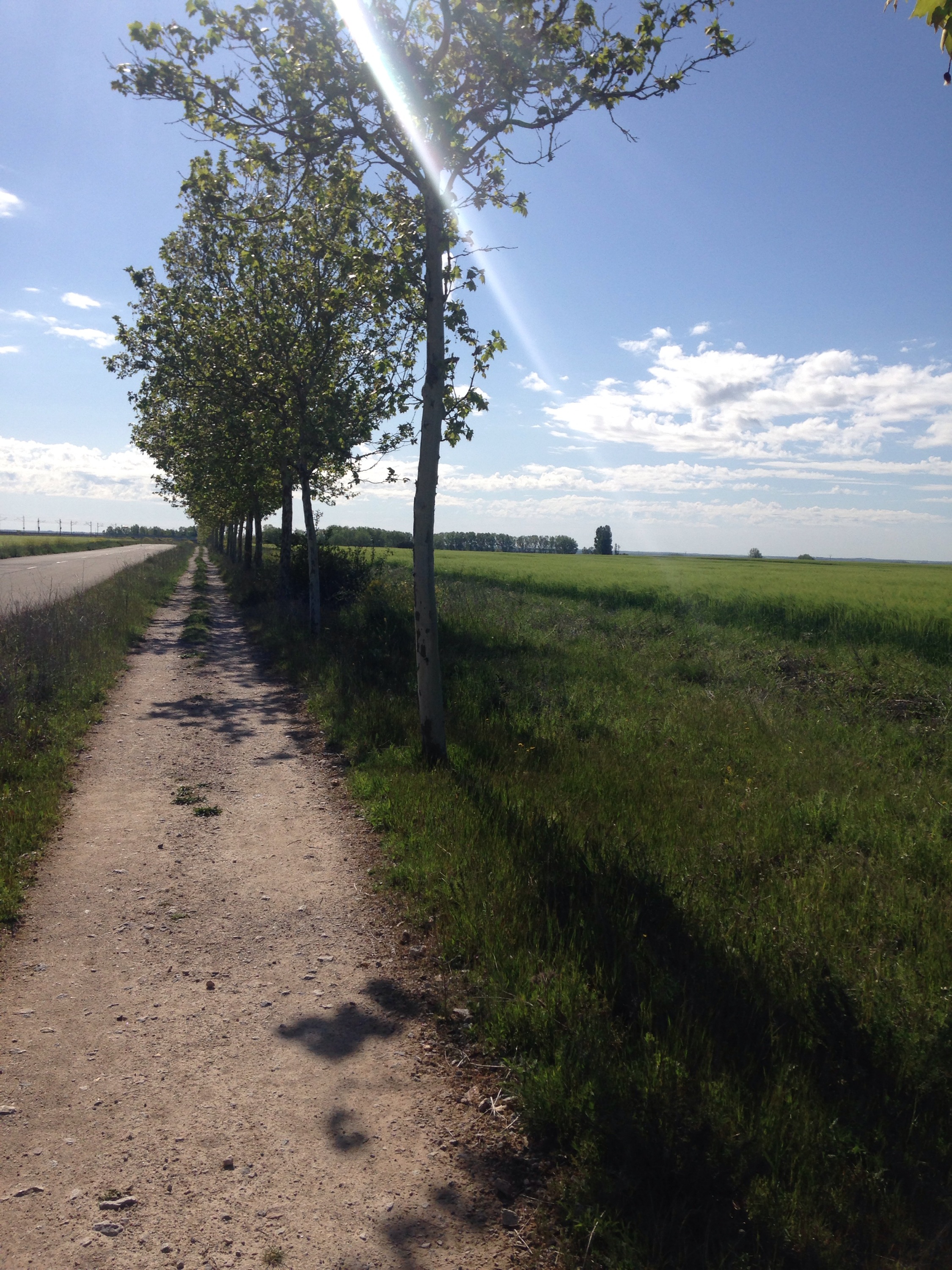 Today was hard. It was a long straight walk on a gravel path. Gerard walked on the bitumen road because it was easier to pull his cart! Scenery is much the same and I’m really buggered. Came across the Canadians I met on my first day, and two girls from Lightening Ridge.  Will probably reach Leon on Friday.