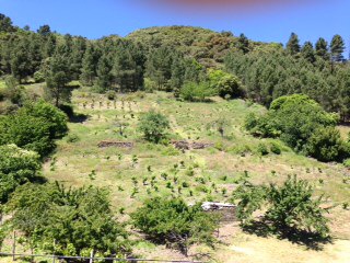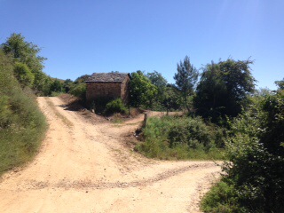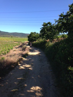 Had another late night last night so slept in a bit this morning. The place was like a ghost town as all the pilgrims had left at dawn as usual. We decided to just start walking and see where we ended up, and when we reached the fork in the road, took the scenic route as opposed to the faster road route. Such a good decision. It was absolutely beautiful and we hardly saw anyone. The path took us through wine plantations, surrounded by fruit laden cherry trees. The wild flowers are in full bloom, roses everywhere and the smell of honeysuckle wafted through the air the whole way. The vegetation has changed to a more English look with lots of oak trees and English flowers. There is fluffy pollen of some sort floating around. It is sticky and looks like froth. When it lays on the ground, it looks like snow. So pretty. We walked through a tiny medievil village. It almost look deserted, but there were some characters busy in their gardens etc. everyone stops to talk. It is lovely. Very hilly now, and we are in another wine growing region. We stopped to fill our water bottles and have a snack, and Gerard hung up his hammock. Very hard to get moving again