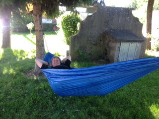 Wow! So love reading yr blog Stotty! Will miss it when you come home! Ha! Ha! You d better just keep travelling!walking around the globe , tho a think would b hard to find another Camino?! Penny said she s considering one in Portugal and a friend from bookclub said she s doing a Peace Walk, so i m wondering if that is the same? I know they are both in around the same part of Europe, least I think they are… Its half past four in the mning here and i hopped up cos i was continually coughing, waking poor patient Kev up with my cough, cough , coughing! He didnt complain but i feel quite guilty as he has a lot of trouble sleeping with his back pain et al…anyway as i went intothe kitchen my ph bipped and happily i found it was you! ( not another Coles email!) hooray! I ve had another Cepacol and i ve settled down a bit but will wait for a while before i trot back to bed… Its amazing being able to communicate like this! The other night i was “talking” to my friend Annie in Paris, my friend Jackie in Taiwan , Penny in Bali and you!! Truly incred!!! I loved your blog named Food(!) of course Iwould! It looked 5 star! Bet it tasted just as good! I made a banana cake tonight (donna hay) as the Ash and Jack are coming tomorrow/today!) will b trickey keeping a distance from them with this bug , Sarah coulnt wk last week as i had it then too and wasnt up to looking after them and didnt want to pass on these germs! Ce la vie! In melb winter! Okay then must stop prattling, nothing scintillating to tell! I loved the photo of you in the hammock! What a happy face!! Looking fwd to yr next chapter! Sleep well! I cant ! Love megxxxx