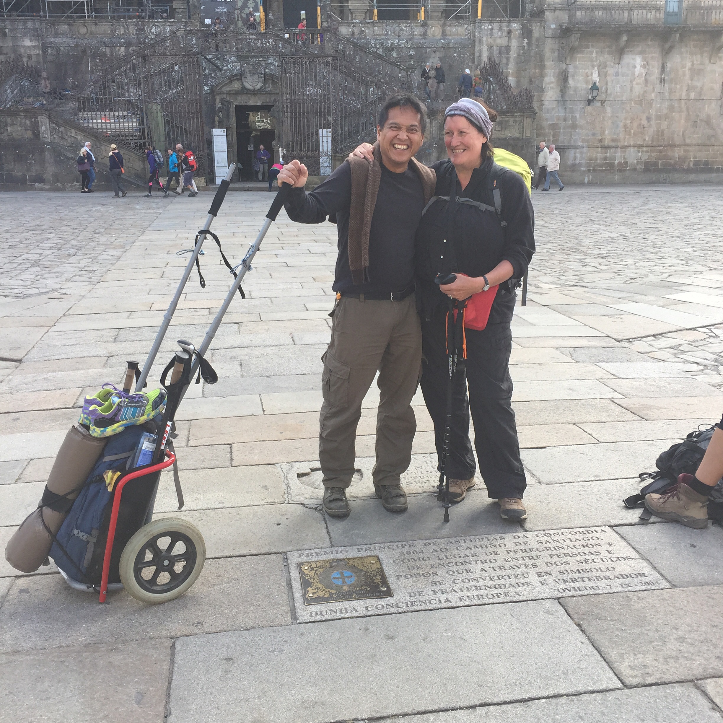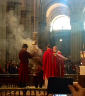 Les had waited a few days for Gerard to arrive, and he took this photo for us. We stayed at the Parador Hotel as a last hoorah and went to the pilgrim mass at midday to see the botafumeiro swing and swoosh the incense over the top of us. It is an old tradition that was used originally because the pilgrims were so smelly. Spoze nothing much has changed. It was really moving and the singing was amazing. They keep the first 10 pews for pilgrims, so as long as you arrive early, you get a great seat. We then went for a walk, got our Compostela certificates and sat on the stairs watching and listening to an opera singer busker. He was incredible (and very funny) so we stayed for ages.