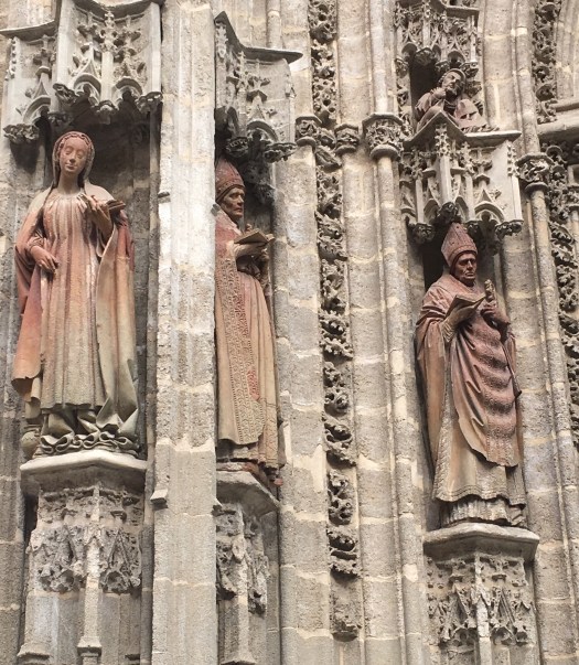 We are staying in a fabulous little shoe box of an apartment right near the Cathedral ( the largest Gothic cathedral in the world) and no matter where you are the spire points proudly above the buildings and is a great landmark. The tiny laneways and streets are teeming with tourists and we spent some time yesterday sitting in little bars, eating (no, gorging) on local food and wine. Street theatre has been interesting and I’m loving the vibe!