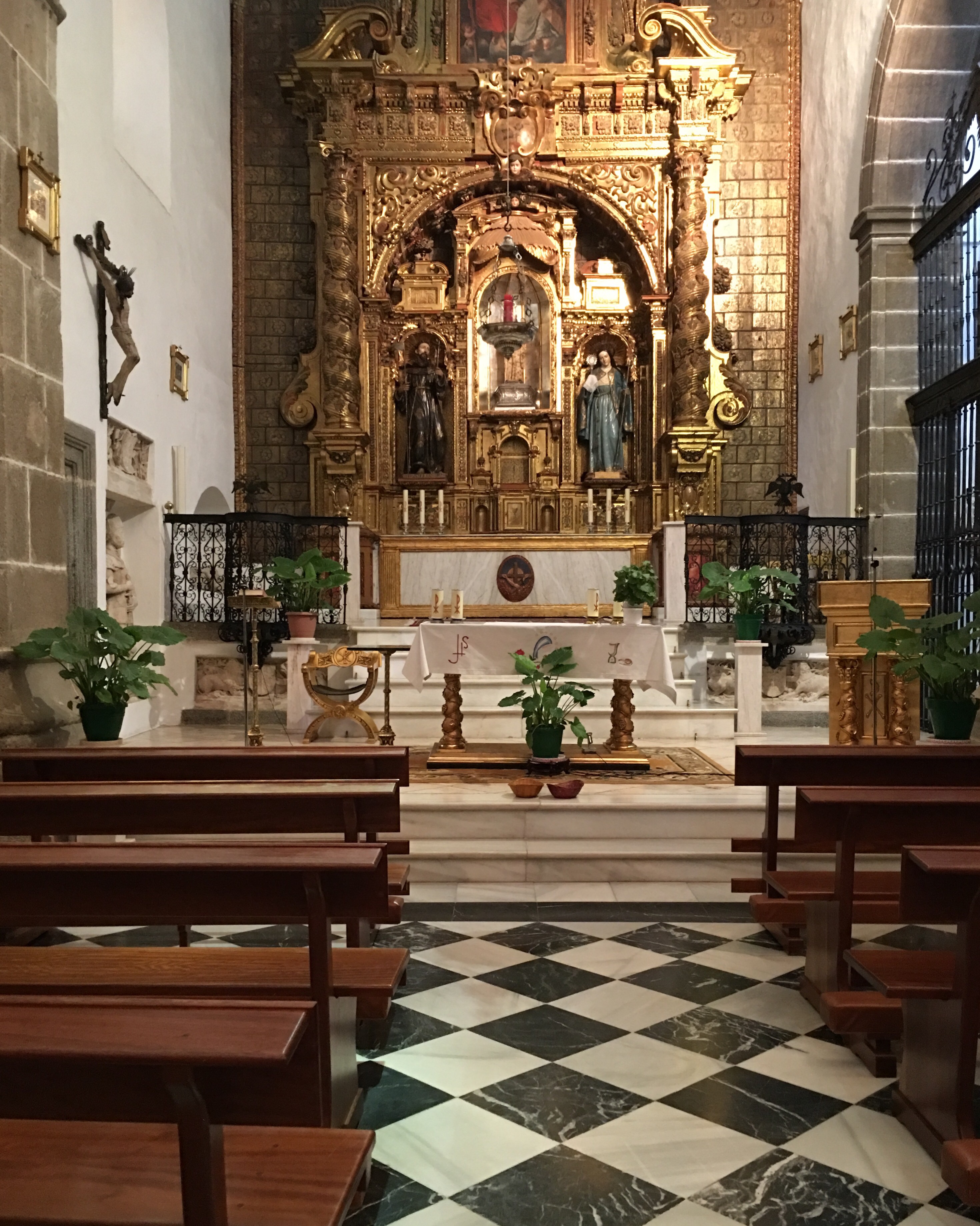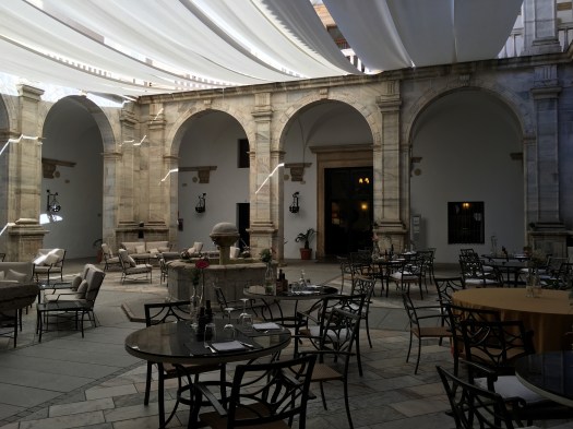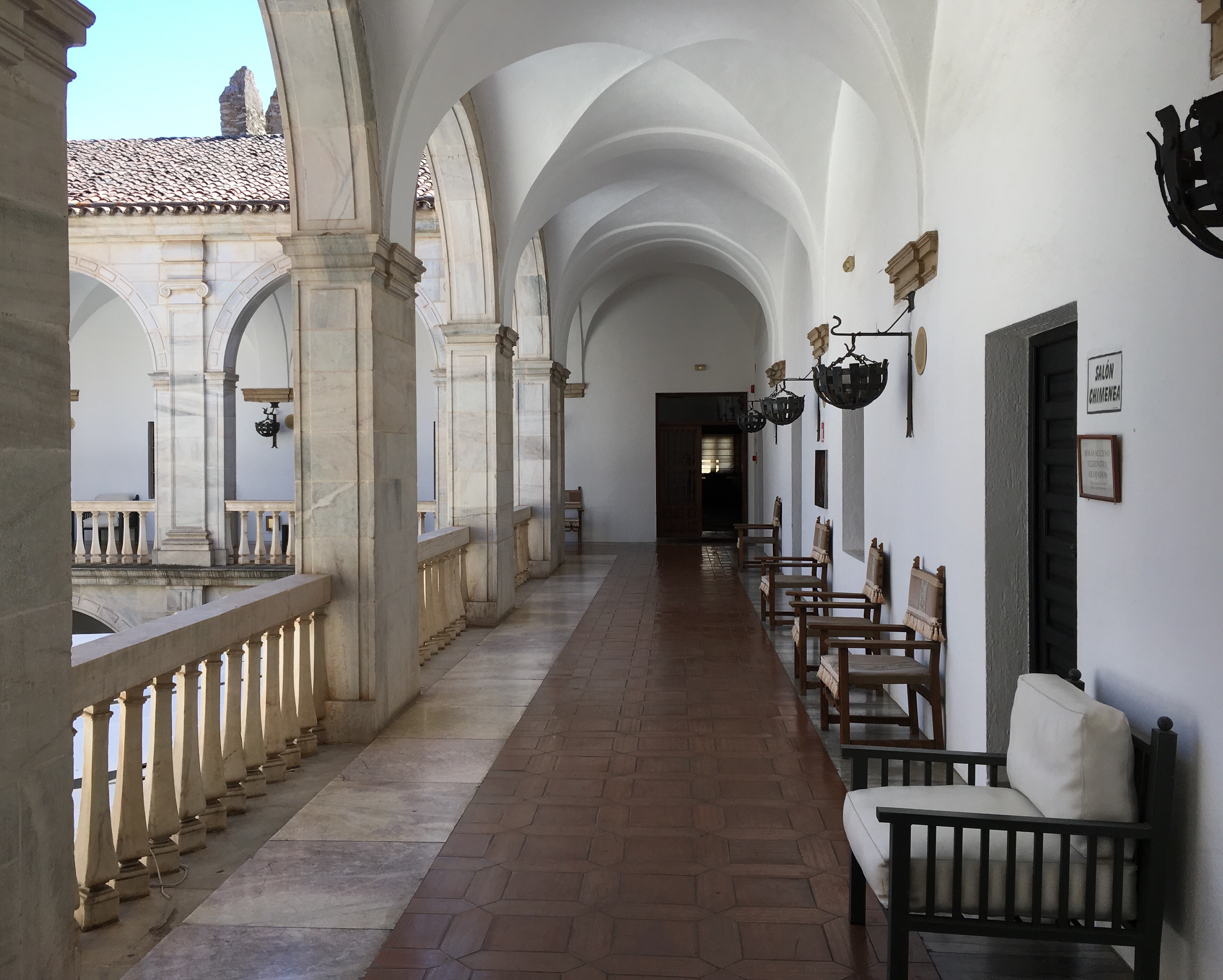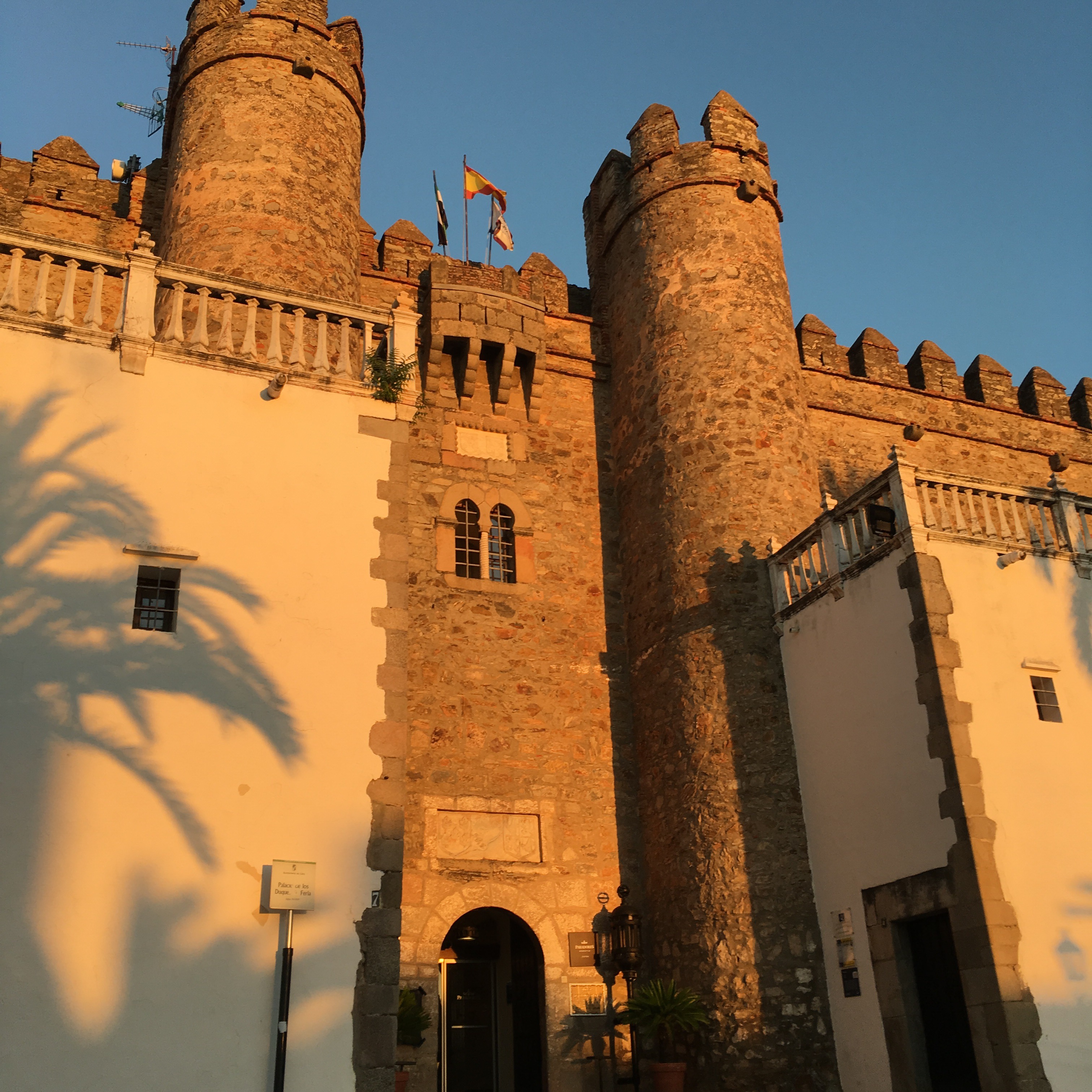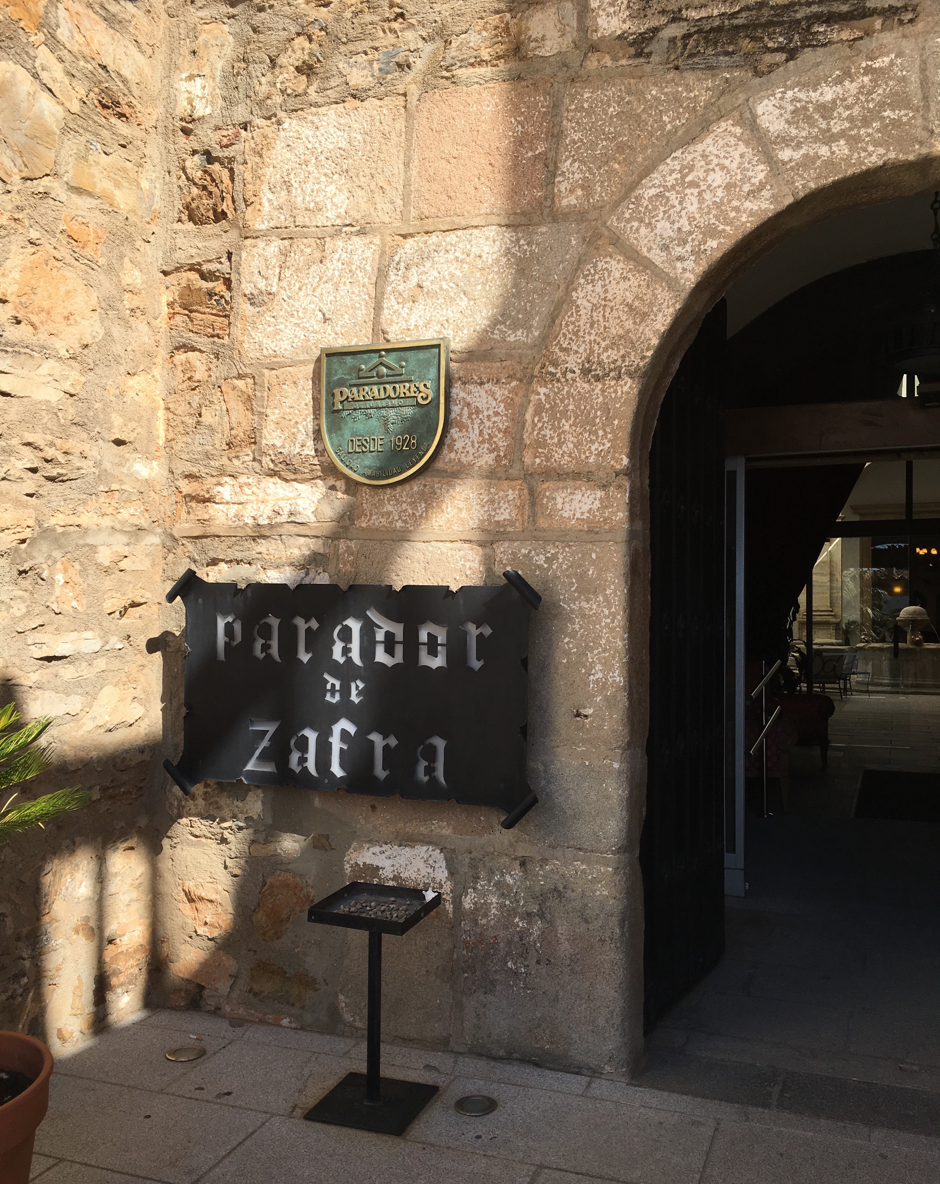 Sitting in the Parador (luxury hotel) in Zafra sipping on a smooth and tasty vino Tinto from the Rioja district. I’m surrounded by ancient marble pillars and opulence. Why you ask? Why not is my answer! It is a really old castle and it has a pool, a bar and starched sheets.