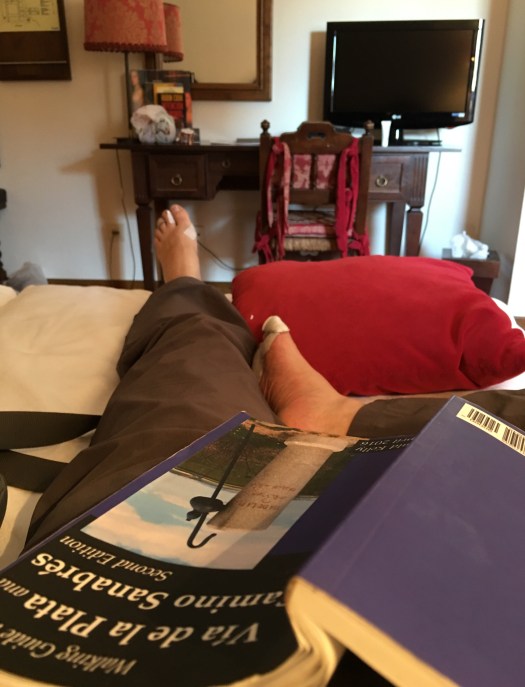. It came up quite quickly and its fierce heat affected us after a while, so we opted for a taxi from a town not far from our destination. I’m not ashamed of this. I’m still walking most of the way and this Camino is much tougher than I anticipated. You all know how I wilt in the heat, and the path is baked dry and hard so it is really hot underfoot. My Feet hurt so much