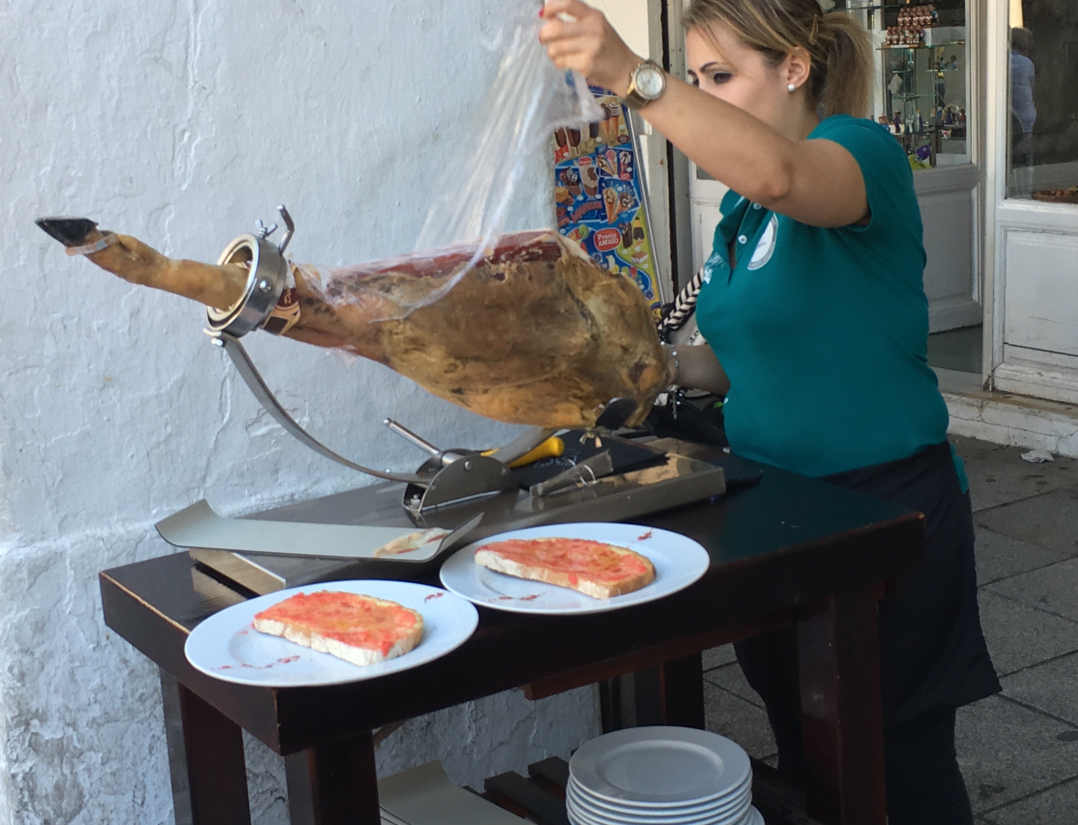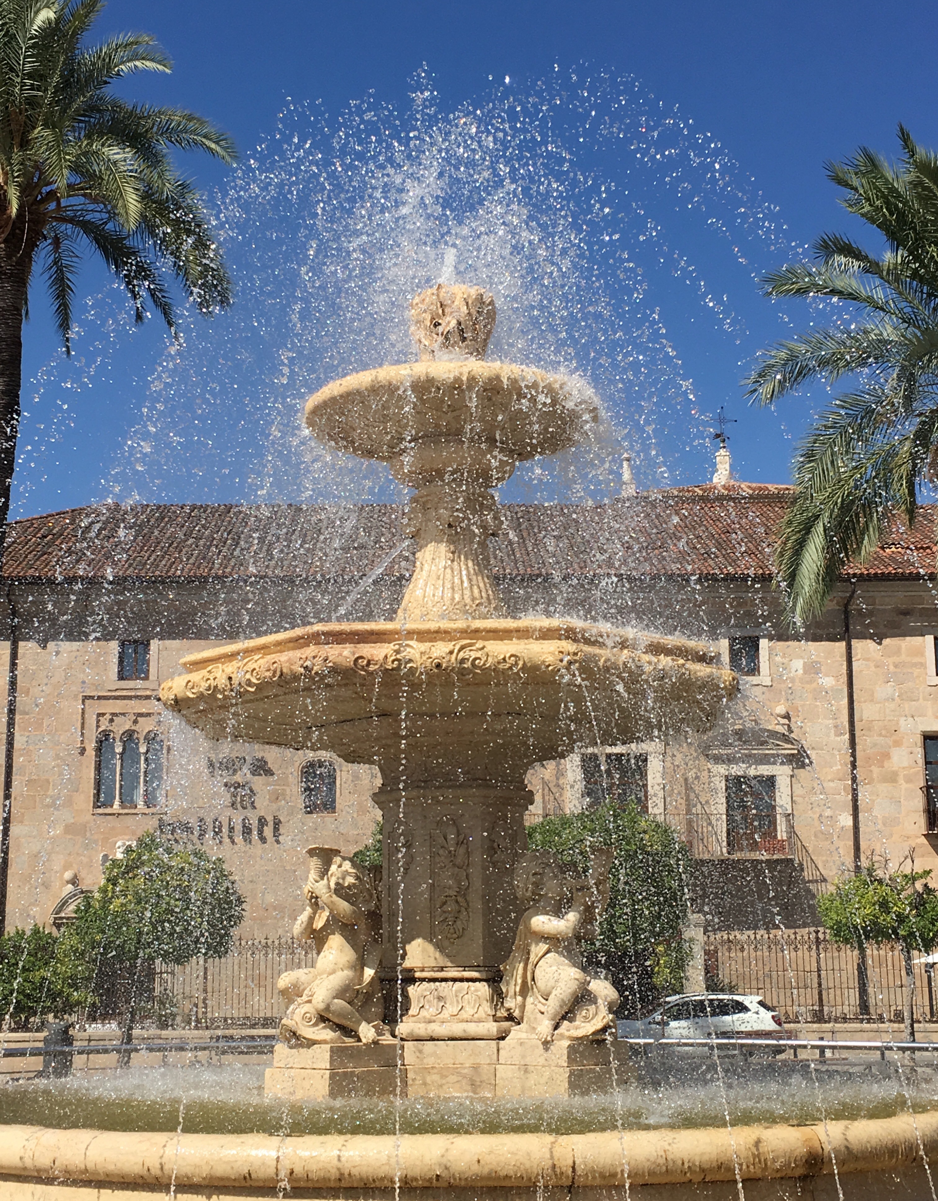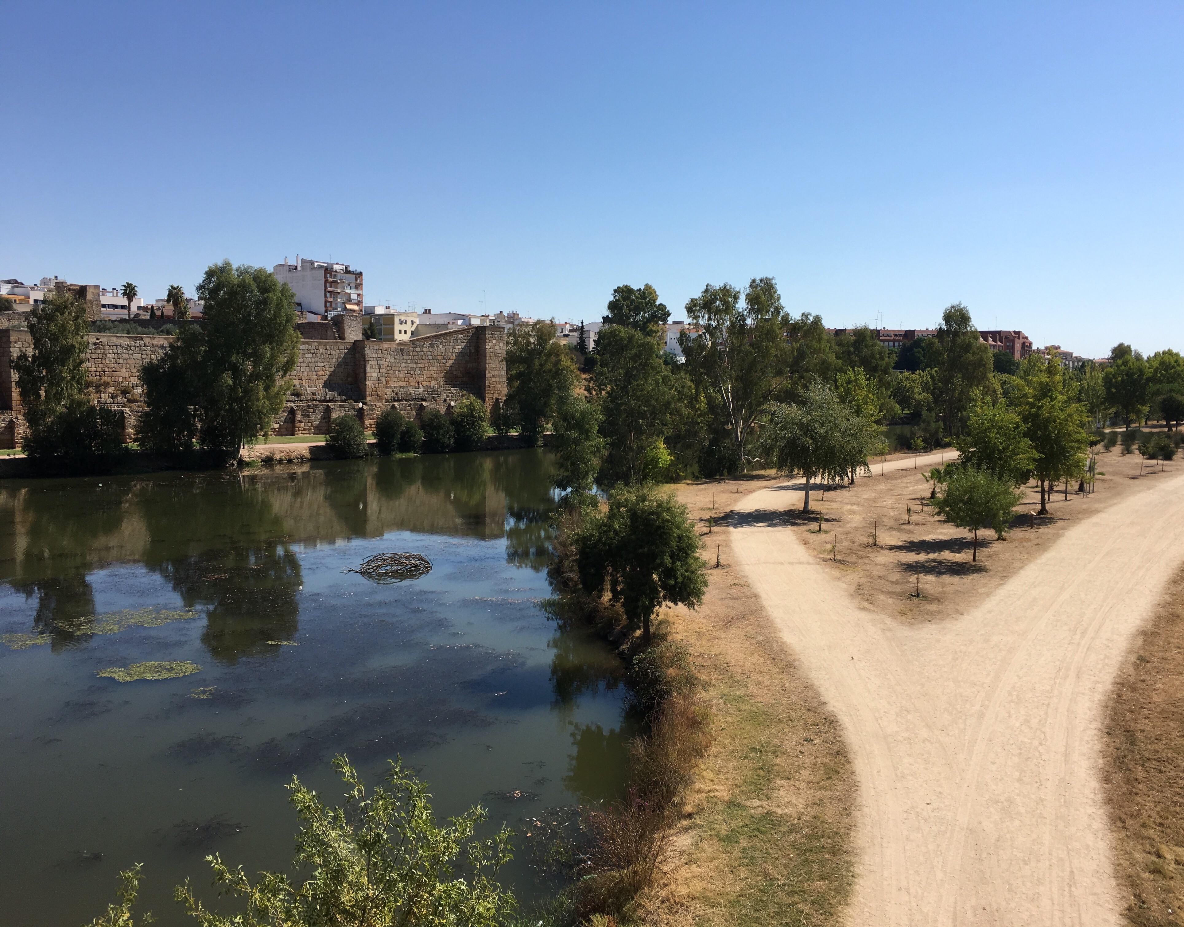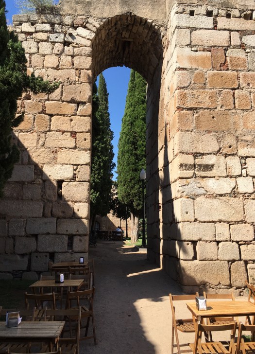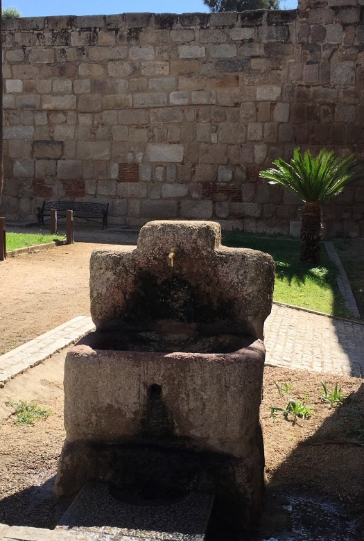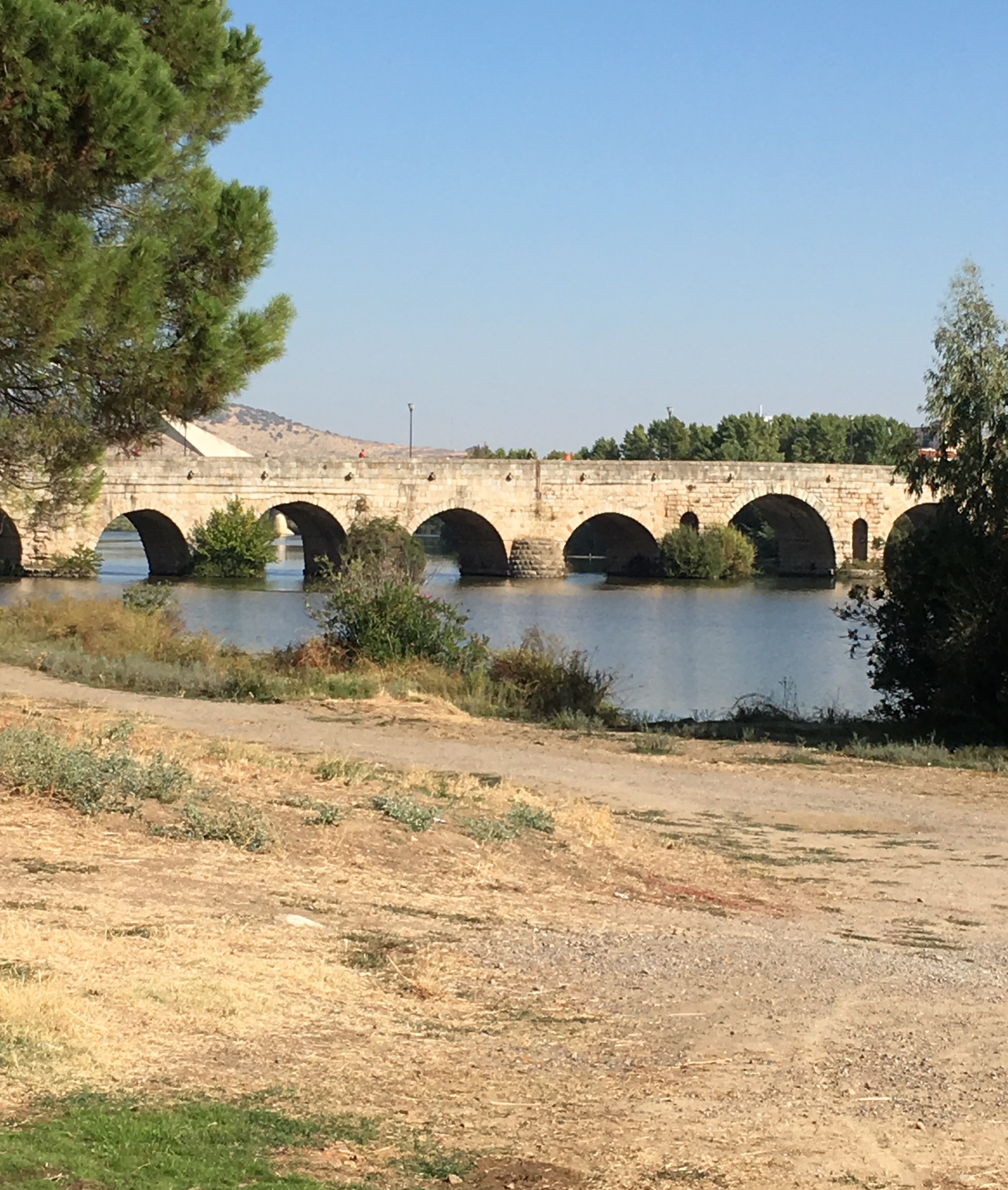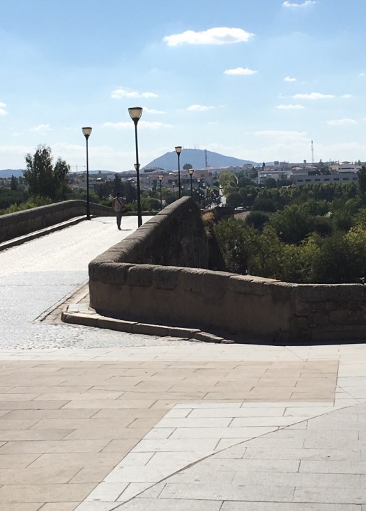 We arrived at Merida at about 11.30.  It was originally settled in 25BC and boasts the longest Roman bridge in the world. It is nestled alongside a beautiful river and after finding our accommodation, we trotted into town to have a look. The bridge is almost a kilometre long!