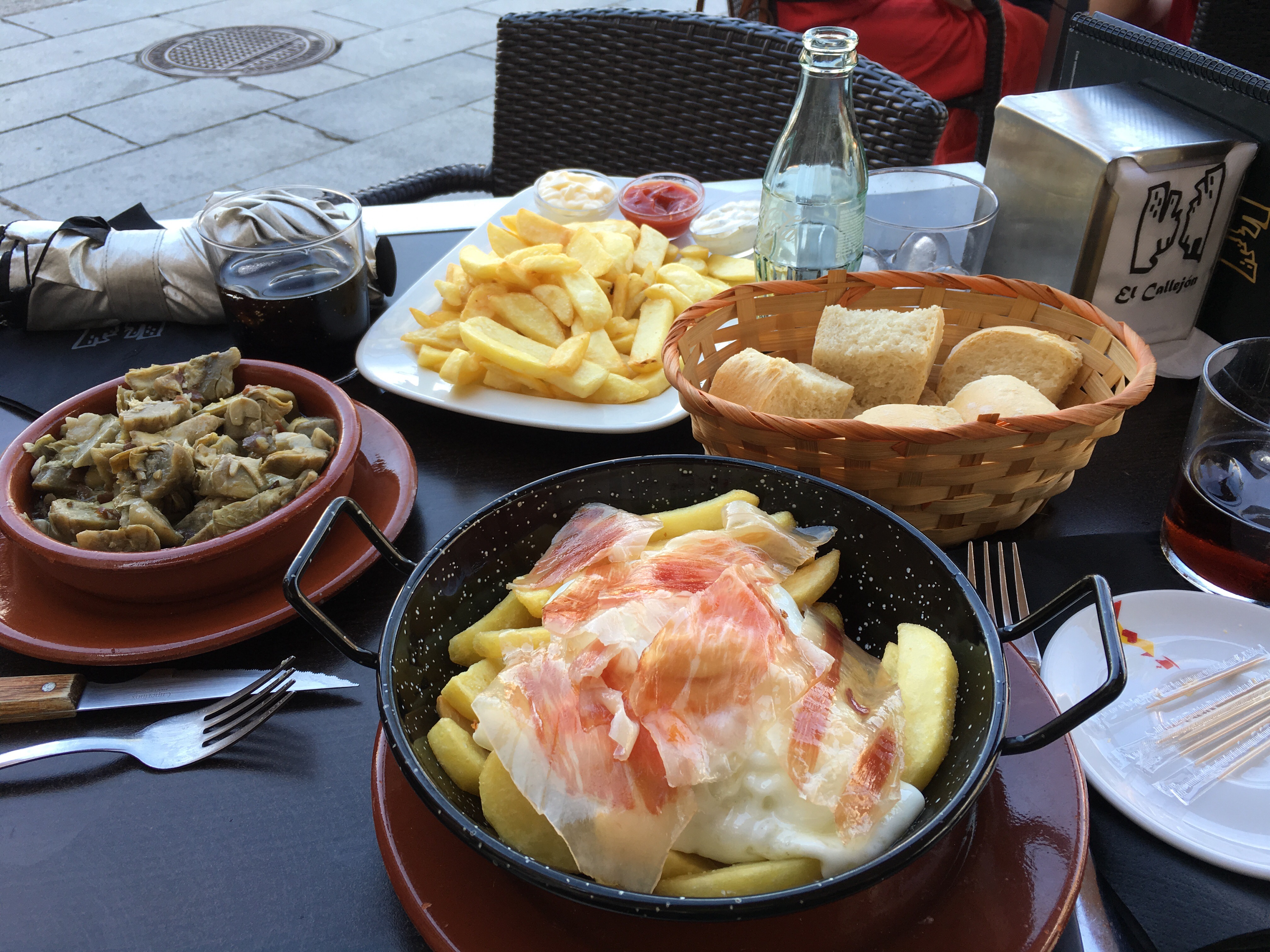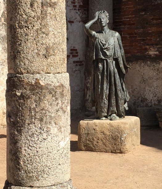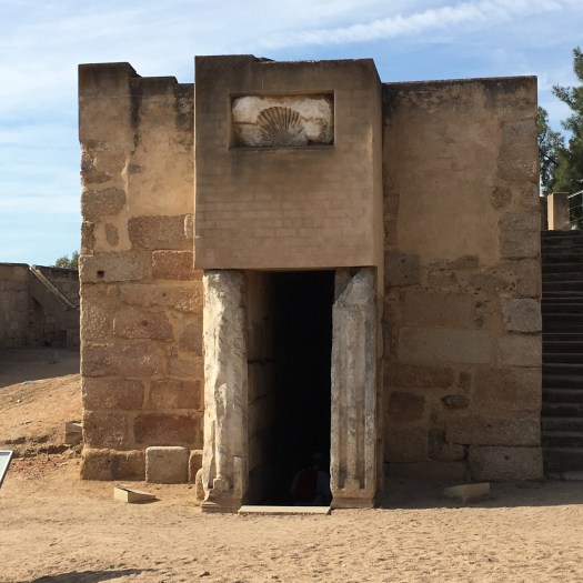We had a fabulous day wandering the streets of Merida. We had lunch in the town square and watched it come to life as children ran around and played. There was a wedding at the Parador and we enviously watched the guests arriving in their finery….Men in suits, and women looking so elegant. What a contrast to our pilgrim attire of bandaged feet and hiking clothes. We gorged on eggs and chips, small empanadas, artichokes and coke. My poor body is screaming for vegetables!!!
