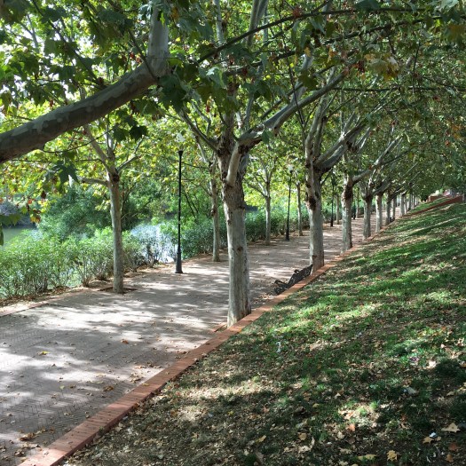 We are in the council albergue which is really nice. It looks like an old mill or something and is right on the rivers edge. Ducks are floating serenely by and the trees are showing autumnal signs of gold and orange leaves. It is very peaceful here. The best thing here is the sight of green grass and trees. It is unseasonably hot and everything has been so bare and brown.