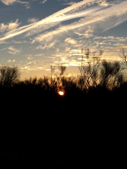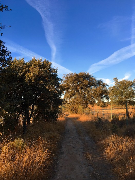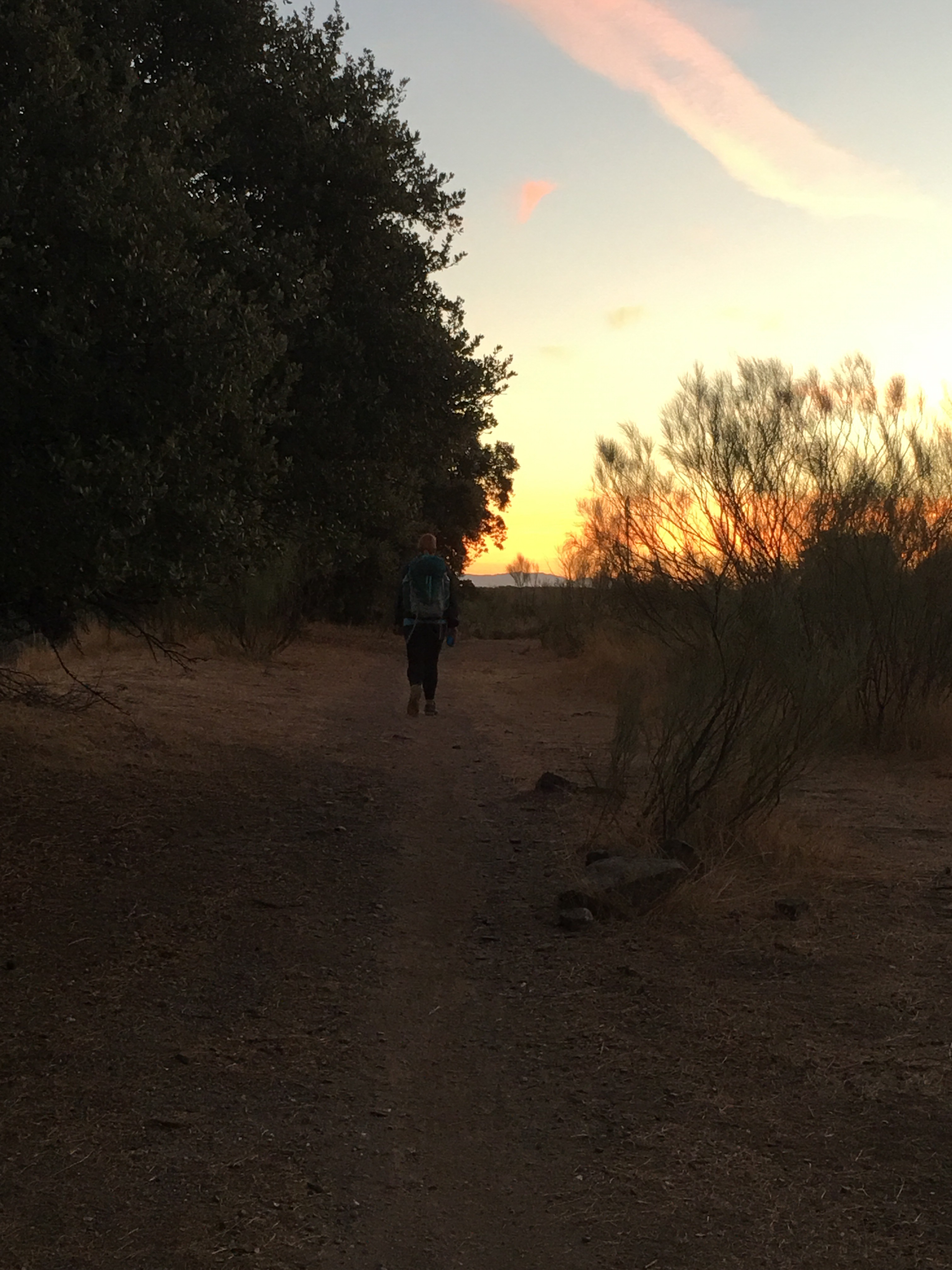 It was very dark with no street lights, and ages before we found a yellow arrow. Walking on the side of the road in the dark is not ideal when there are trucks around, but eventually we found our way to the track and were rewarded by yet another beautiful sunrise.