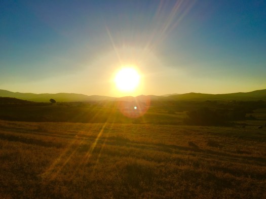 It was again a little difficult to find our way out of town because the markings are so sparsely placed, but we soon found ourselves out on a country path and waiting for the sun to rise again. Each morning has been such a treat and it is so hard to put the camera away as the sun tosses its golden blanket over the grass and catches its threads in the branches of the trees. It is the highlight of each day for me.