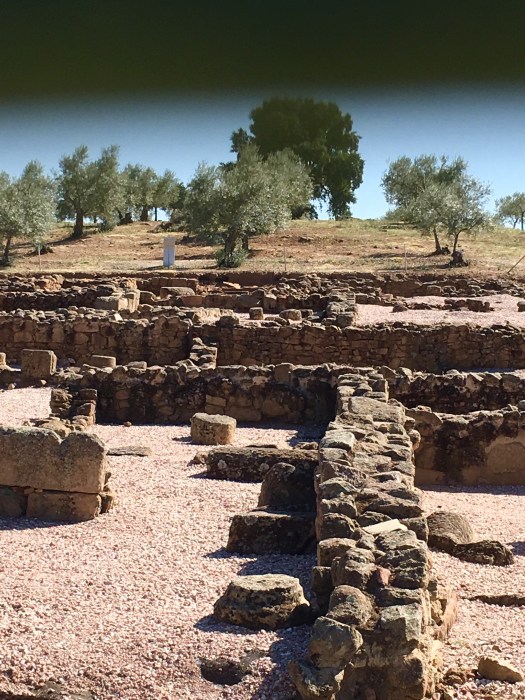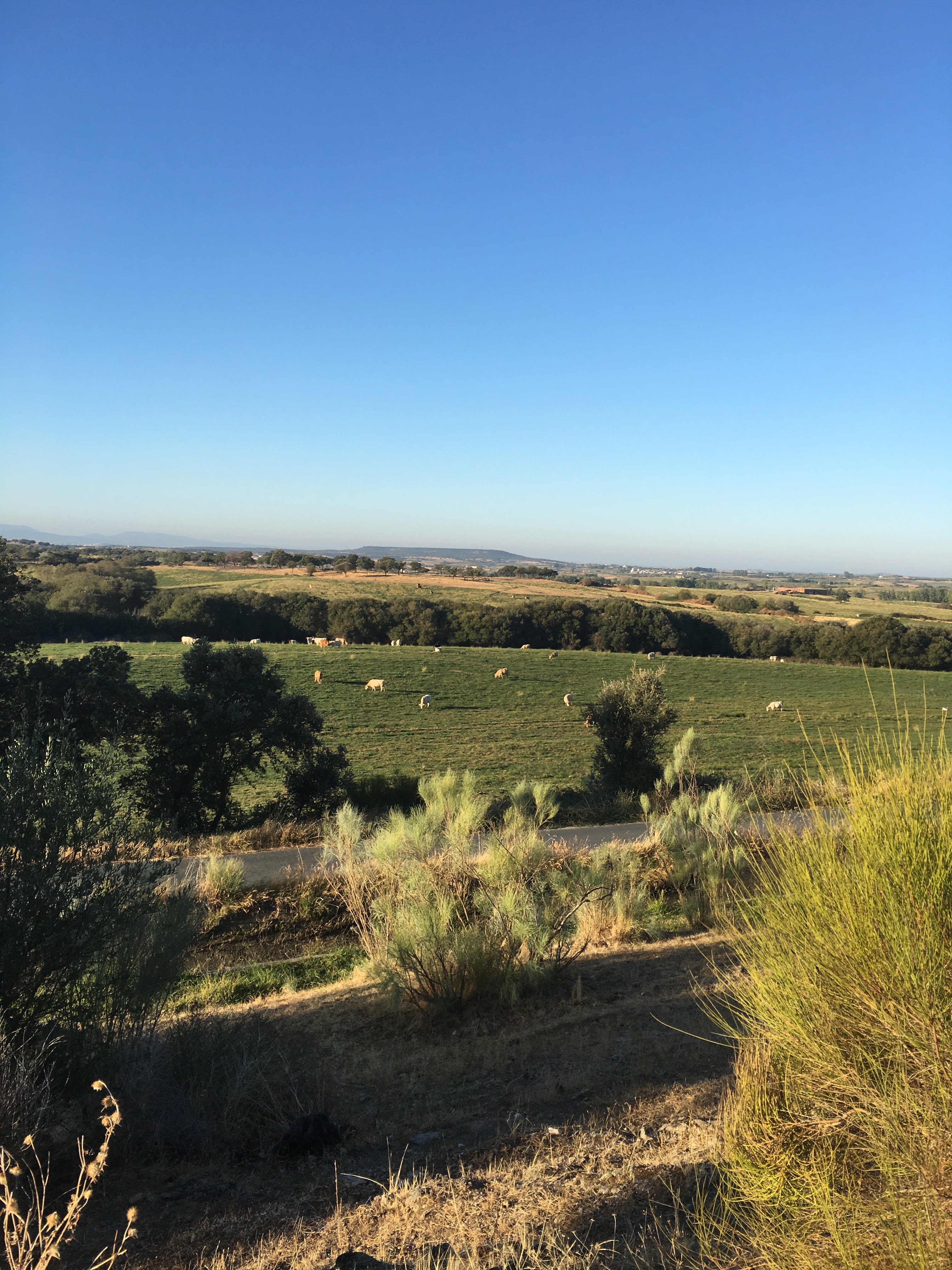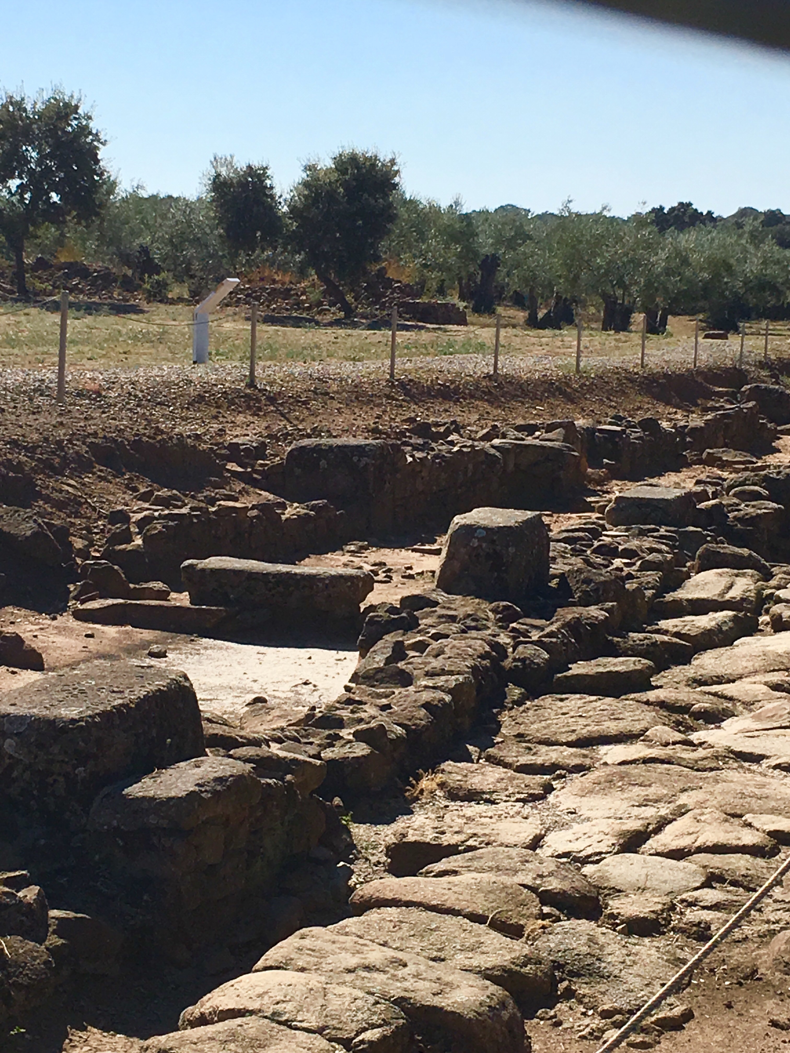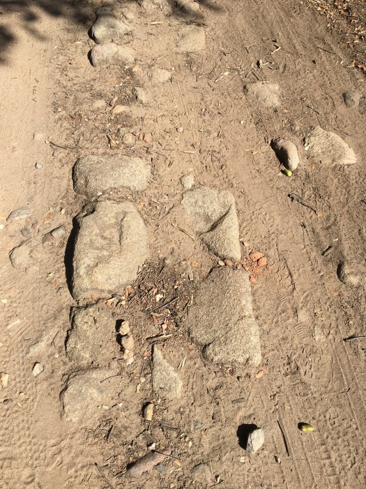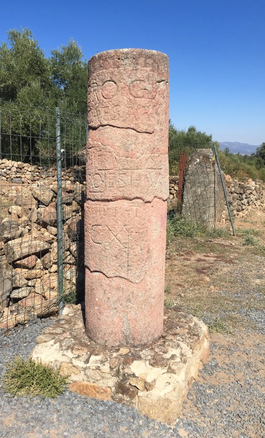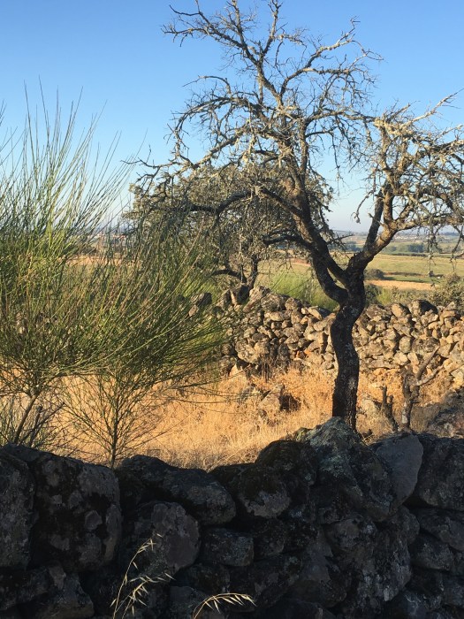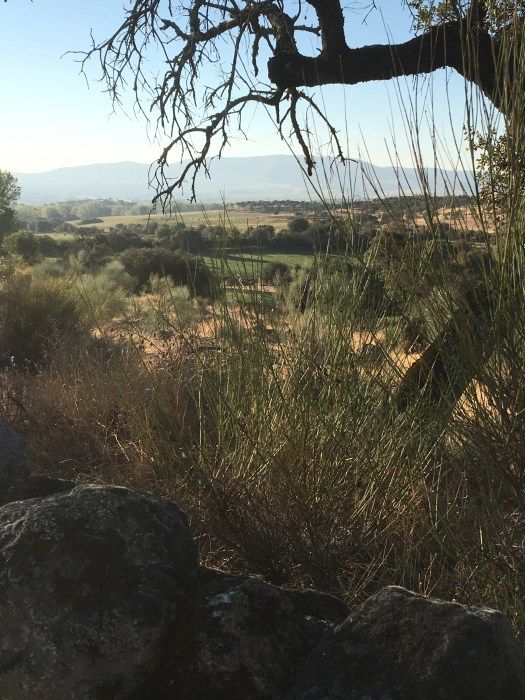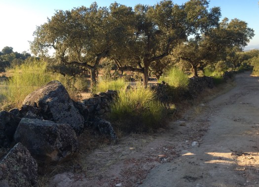 So we resumed our brisk pace. Every morning I’m like a bull at a gate for the first couple of hours but then I slow down as the sun warms up. It was another beautiful walk in dappled shade and warm sun with a gentle breeze. We climbed steadily and followed the old Roman pathways, past huge granite rocks and ancient Roman markers.