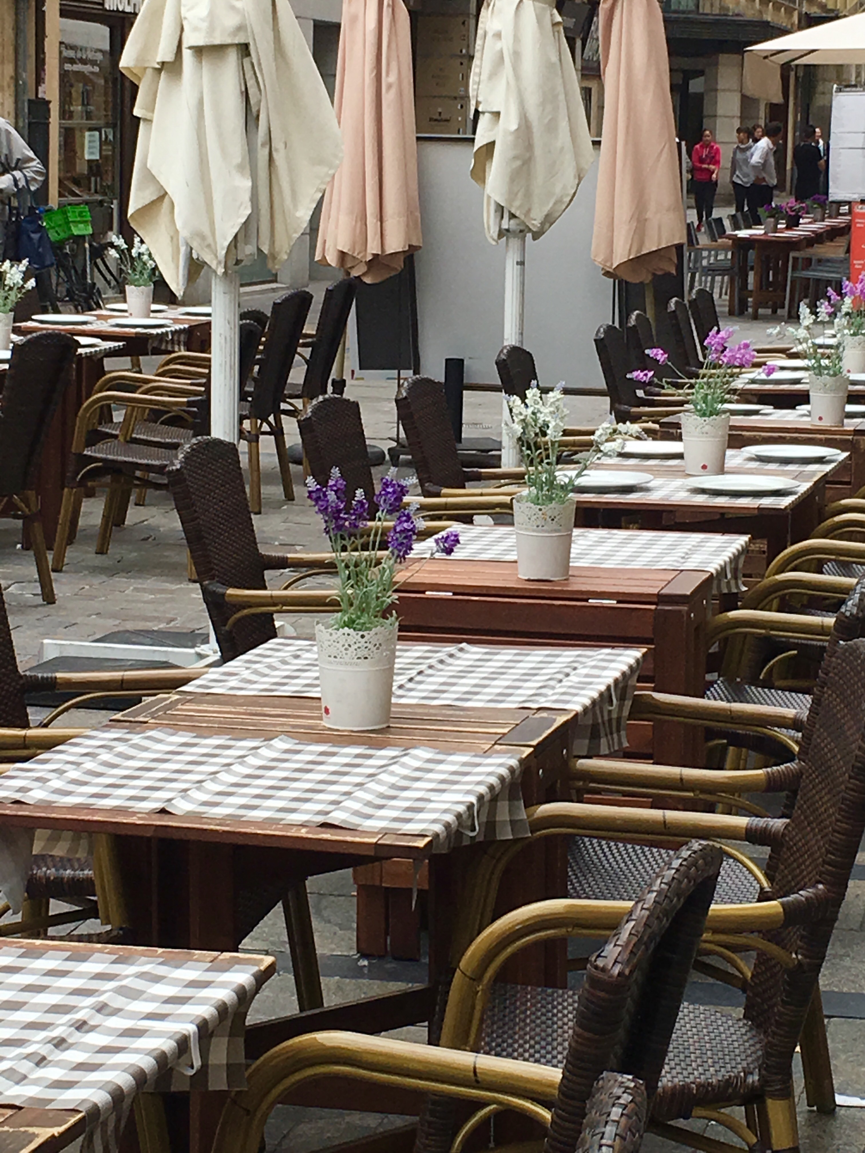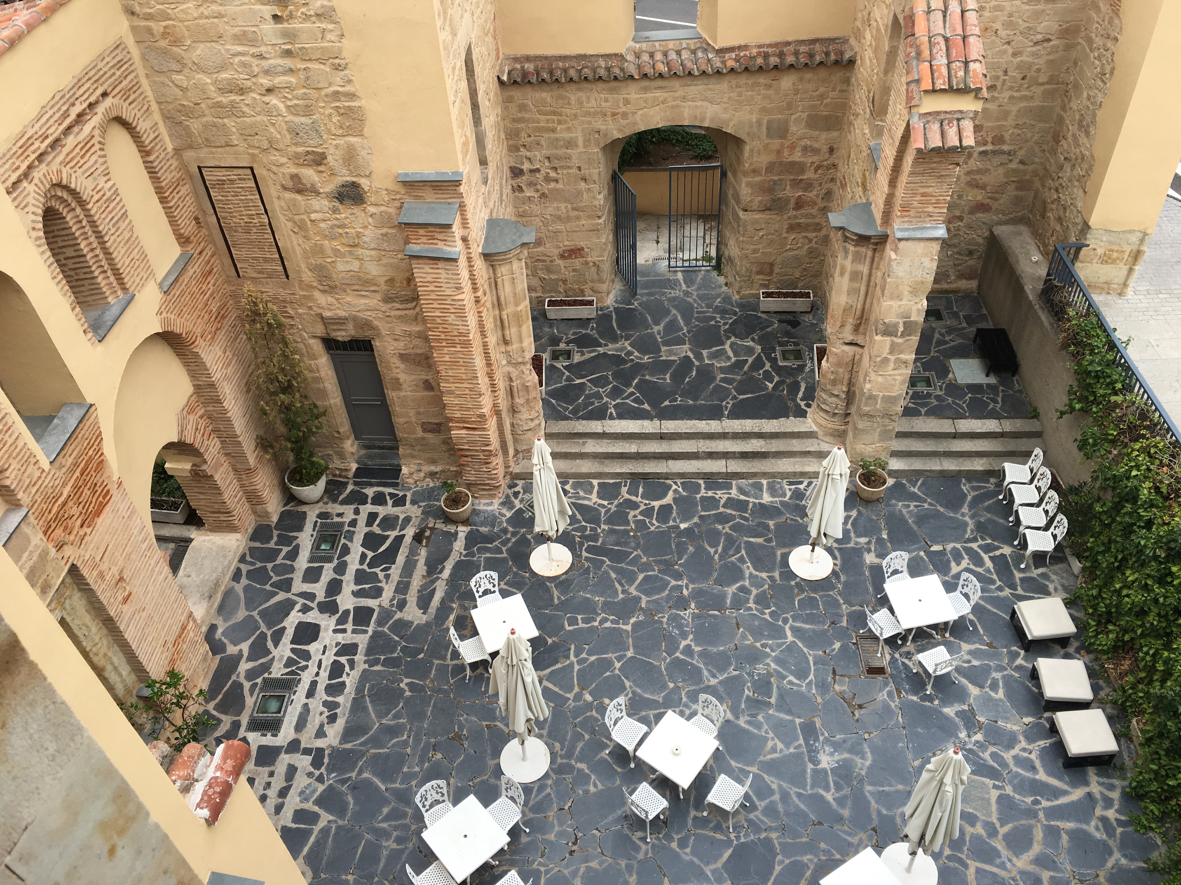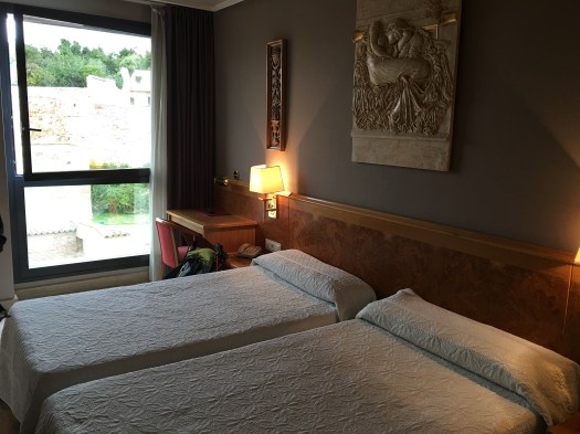 We posted some of our summery clothes forward to Santiago, found a chemist to stock up on stuff we needed and then found our way to the hotel we had already booked a few days ago, as we were supposed to arrive here today. It is very posh and looks out over the cathedral.