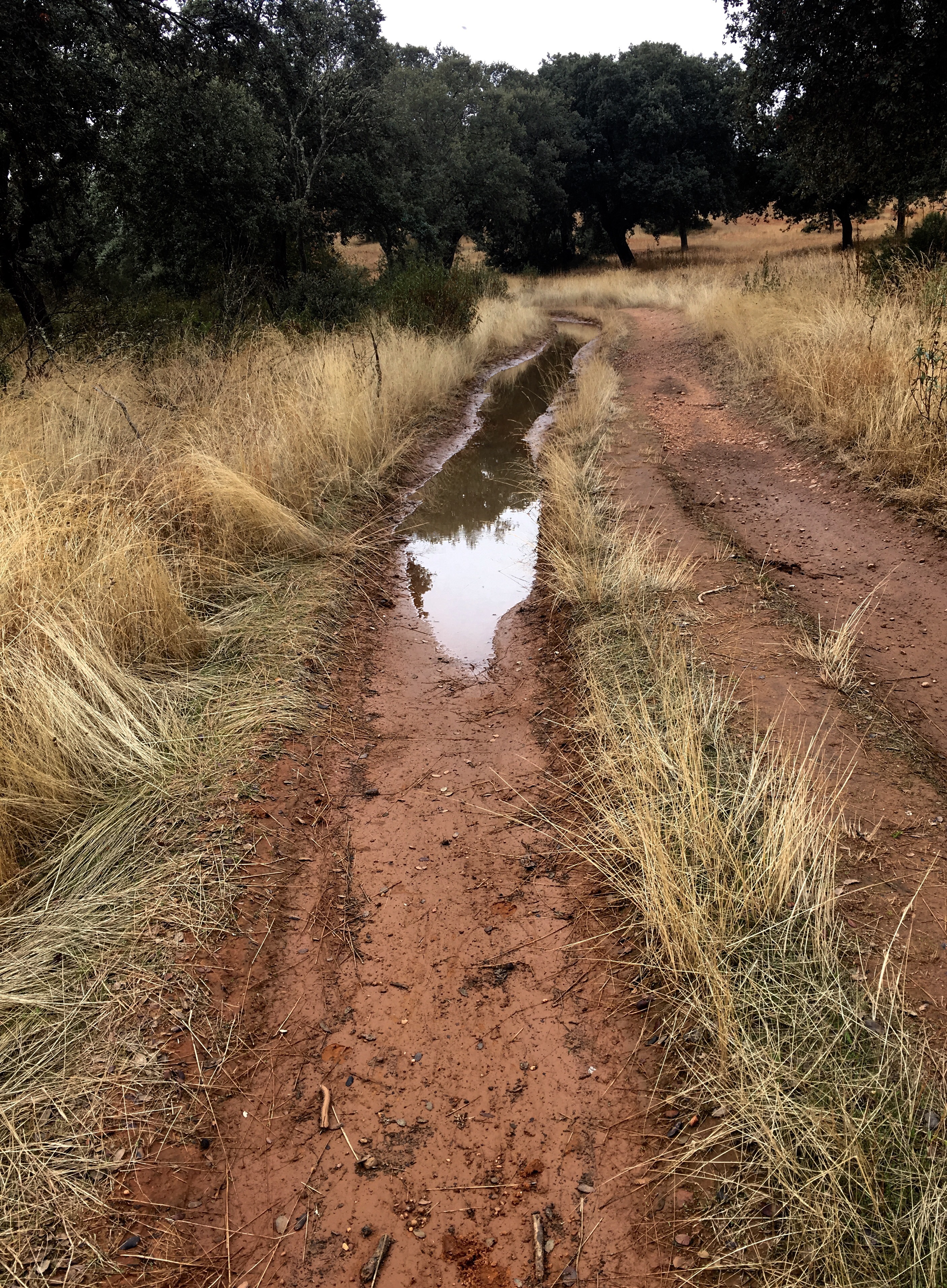 The scenery changed every 10 minutes. We climbed over a mountain range and came down steeply on the other side. We walked through mud, puddles, bushy landscapes and barren ones. Flies were today’s ‘bug bear’, and the sun came out as we traversed the meseta-type plains, so we were really hot. We saw a deer flash across in front of us too.