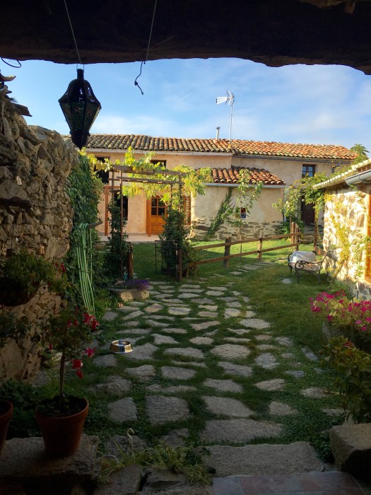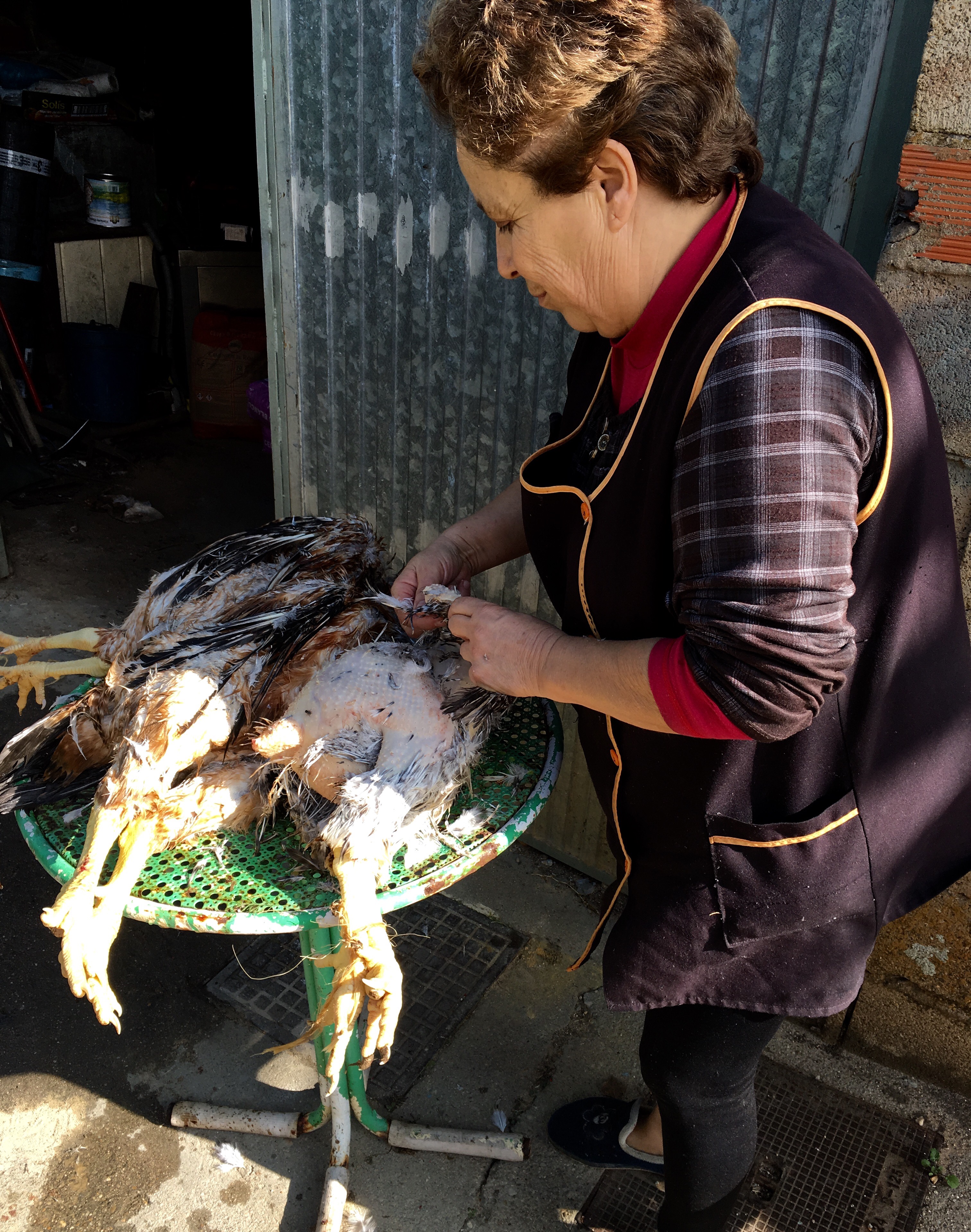 We rounded the corner into Olleros de Tera and were confronted with this lovely lady who was,unbeknown to me, preparing our dinner! She was happily plucking away, feathers flying everywhere and she greeted us with excitement.