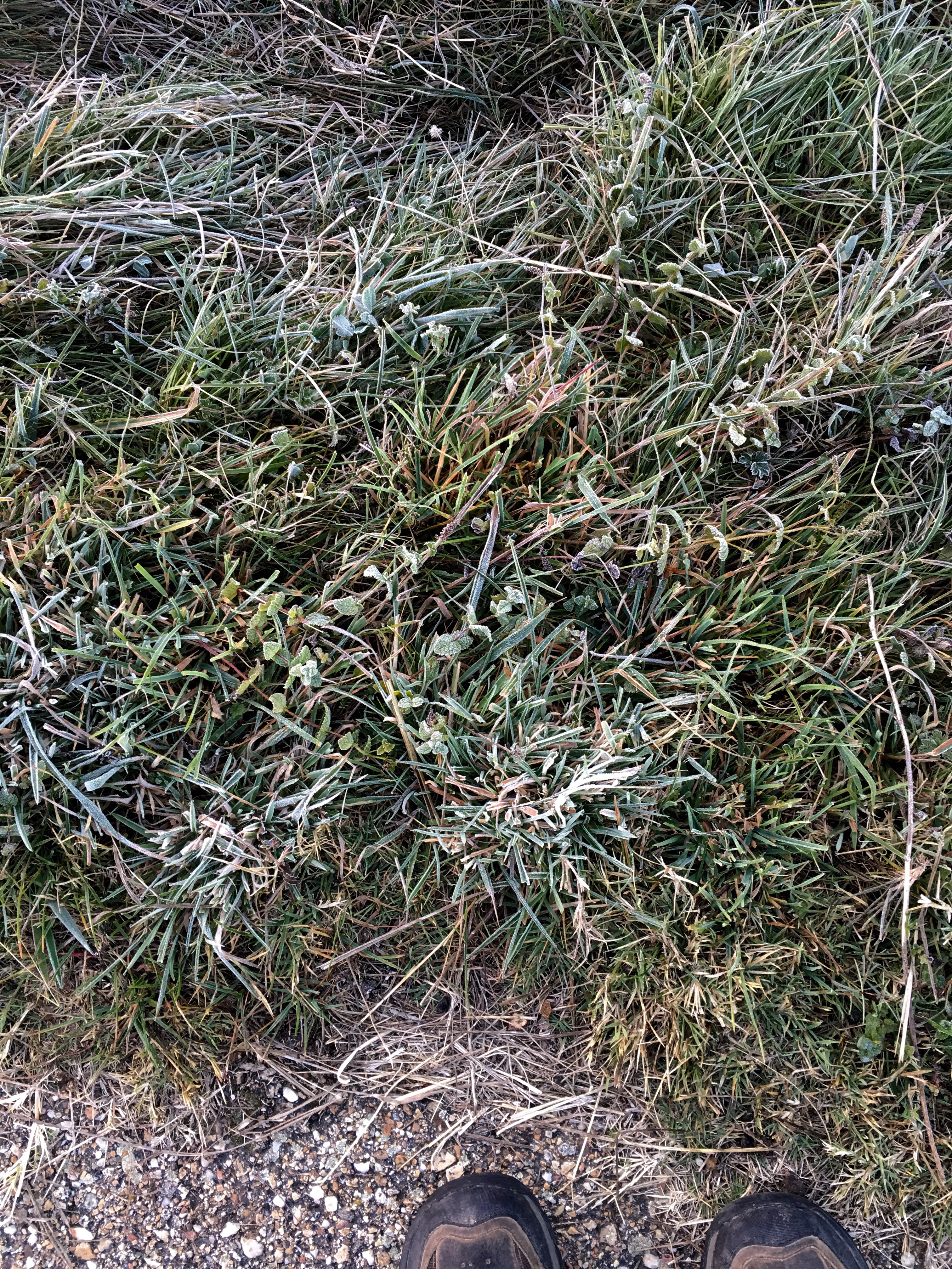 After a long, freezing cold night with 3 blankets on the bed, we went up to the bar for breakfast and took off walking to warm up. It was so cold that there was frost on the grass and I even wrote in the ice on a park bench.