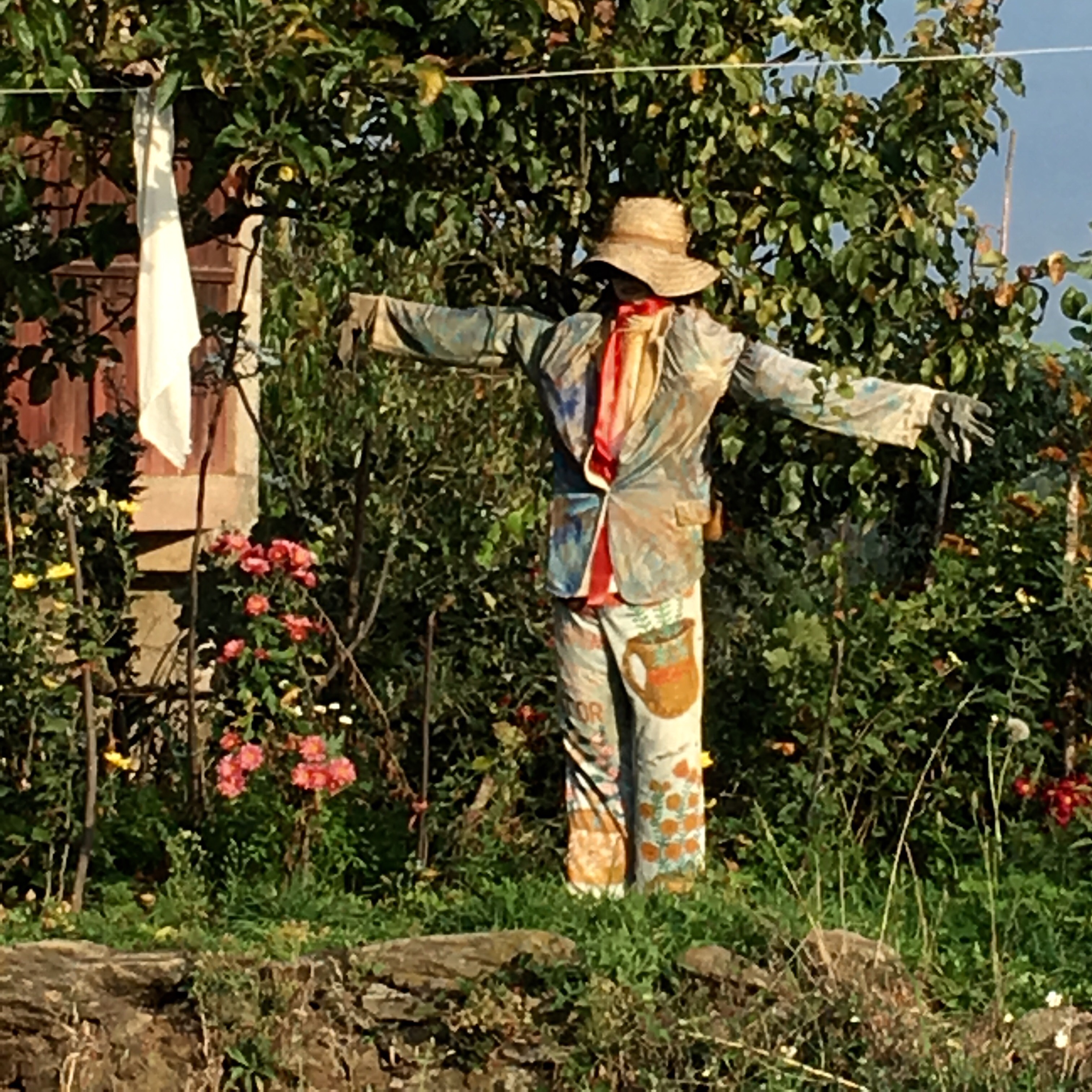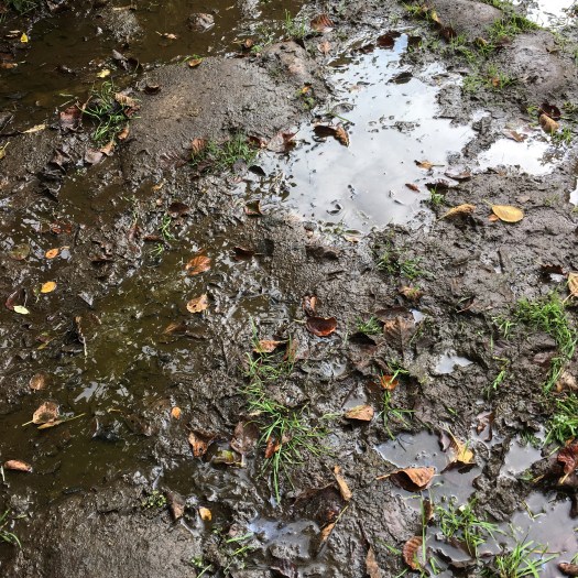 It was warm today. It rained a little and then turned humid. The path became quite muddy and slippery, so we had to take our time. There was also a bit of road walking, which is really hard on your feet. As with much of the VDLP, there is little opportunity to sit and rest. The only place we could find was a drain. Gerry said it had been such a ‘draining day,’ so it seemed appropriate.