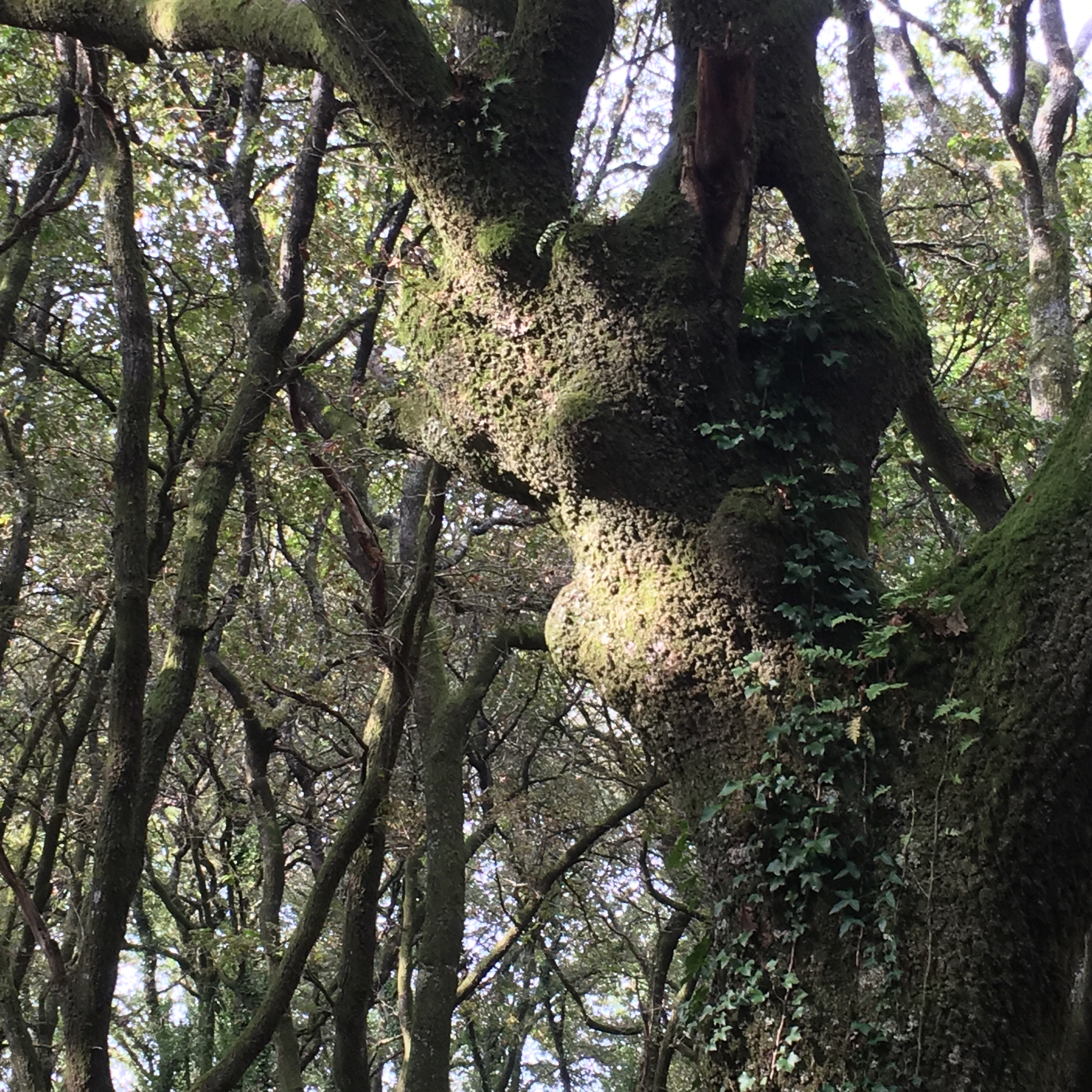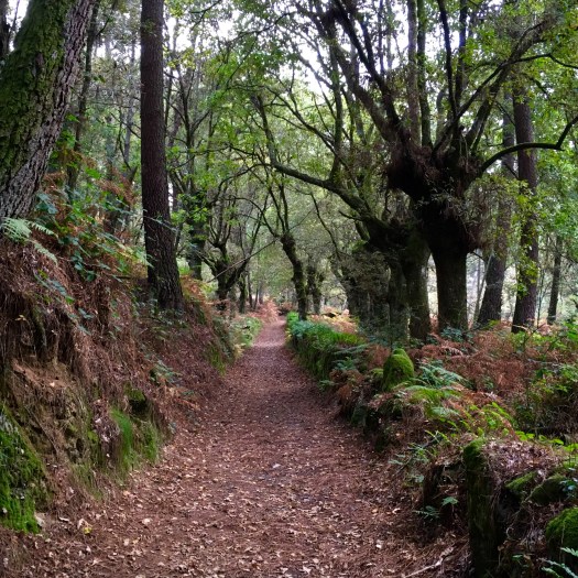 We stopped for lunch in a really rustic and quaint bar, and then moved on to find the scenery changing again into a Galician wonderland. We felt like we were on a movie set, expecting dinosaurs to appear, or perhaps in a novel where goblins would dart out in front of us. The woods are dark and the trees are gnarled. It is not hard to imagine their long boughs and branches turning into fingers that could reach out and touch you. They have lumpy bits on their trunks that look like fairy faces or sometimes dragon faces. It is fascinating!