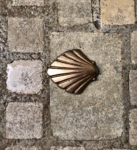 I find myself looking for the pilgrim shells, a sign of the Camino, and getting excited when I step over the brass plates on the footpath. It is comforting to know the Camino is still here underfoot.