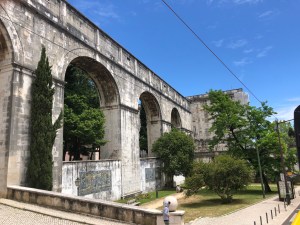 So I took my time this morning getting organized and headed off with the intention of getting a taxi somewhere but the suitcase overpowered me and dragged me down the narrow staircase, leaving us both in a bundle at the foot of the stairs. The momentum was only stopped by the door at the bottom, which is broken and only wide enough to fit one of us at a time. Then the white cobblestones, shiny and slippery because of last nights rain, caused us to slide down to the road and I managed to jam the brute up against the badly chipped corner of the building. We were on a huge hill and I had a dreadful image of us both rolling to the bottom, never to return! Lisbon is known as the city of 7 hills (I would say mountains)!
