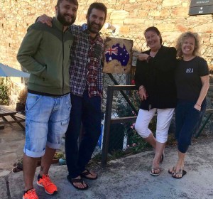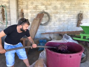 We made a stop on the way to visit his family’s country home, where he showed me the veggie patch and the batch of grapes that are fermenting in the wine vat. He turned them over with a big pitch fork thingy and then we went out, past the storage room (where I tasted some of the rose wine) to the pérgola by the front door which is laden with grapevines, and he picked a few bunches to take with us. We stood on the step eating grapes and spitting the skins and pips out just as I used to do with my dad when I was little.