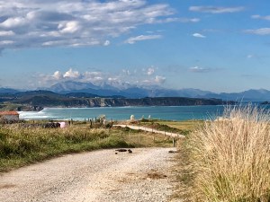 We were all so full after last nights dinner that we could barely eat breakfast, so we went for a wander. We were off the Camino in a town called a Liencres, a place known for its ‘dunes’, so we decided to walk down to the ocean and have a look. We ambled through fields, agog at the size of the mountains in the background, thankful that they would not be on today’s agenda, and within no time, we had walked 5 or 6 kilometres without even noticing. The views from the cliff top were amazing but I felt like I was back in Australia again. The coastline here is much the same as at home, a comment made by my daughter when I sent her a photo. Still, I love the rugged cliffs and sandy pristine beaches.
