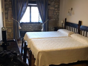 I feel as if I’m in a medieval French village with narrow cobbled streets, sandy coloured brick buildings An atmosphere of times gone by. Window boxes adorned with red geraniums hang by the balconies and tiny shops are recessed into the walls. It is really beautiful here. Our hotel is like a Parador, furnished with antiques, carpeted stairs and portraits everywhere….stunning. I’m yet to explore the town but I’m going to park myself here for a few days.
