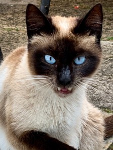 However, we arrived at the monastery after 11 hours of walking. Actually, it took us 11 hours but we stopped for lunch and morning tea. Our undoing, if you haven’t noticed, is that we take so many pictures! Who can resist a cat with vampire teeth, flowers on the door handle to keep the witches away, a duck wandering amongst the restaurant patrons, and a man wearing devils horns?