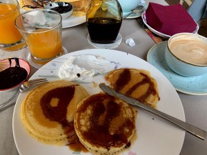The day began with Monica taking me to have American pancakes at Bar Tertulia. We sat and gorged on a pancake stack smothered with real maple syrup and meringue cream. The accessory of rich dark chocolate sat untouched beside it, even though it was screaming out my name, and I washed it all down with a cup of cafe con leche. The waiter made me a special one. Wonderful!