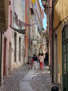 I moved on to a town called Coimbra. How is it that no one told me about this place? What a beautiful town it is. I stayed in a fantastic hotel called Villa Gale and was upgraded to a room with a balcony view of the valley and the river. I stepped out into the street, I was accosted by Derina a chain smoking, wiry little English woman who needed to vent. She told me that now she is old, she needed to rest more and have luxury holidays rather than 2 days here and 2 days there. She rambled about her health and the weather (which is a typical conversation with a Pom), and finished with telling me that she and Peter are now nearing 60, and that he was upstairs taking a nap after their stressful train trip from Porto. What a shame they had left travel until they were so old! I wanted to interrupt Derina and tell her that I had to go. That even though I am older than her, I was keen to walk around and explore the town, but she wanted to tell me about her allergies, her flea bites that got infected, her infected toenail that was being aired by wearing sandals 🤢, and how she was hoping it wasn’t going to rain.🤦🏻‍♀️ I was stuck there for half an hour and now have clear thong (flip flop)marks from the blazing sun that was burning my feet. Sweat dripping from my head, I finally excused myself and said I hoped to see her later. I scuttled off down the alley way and escaped to the centre of town.