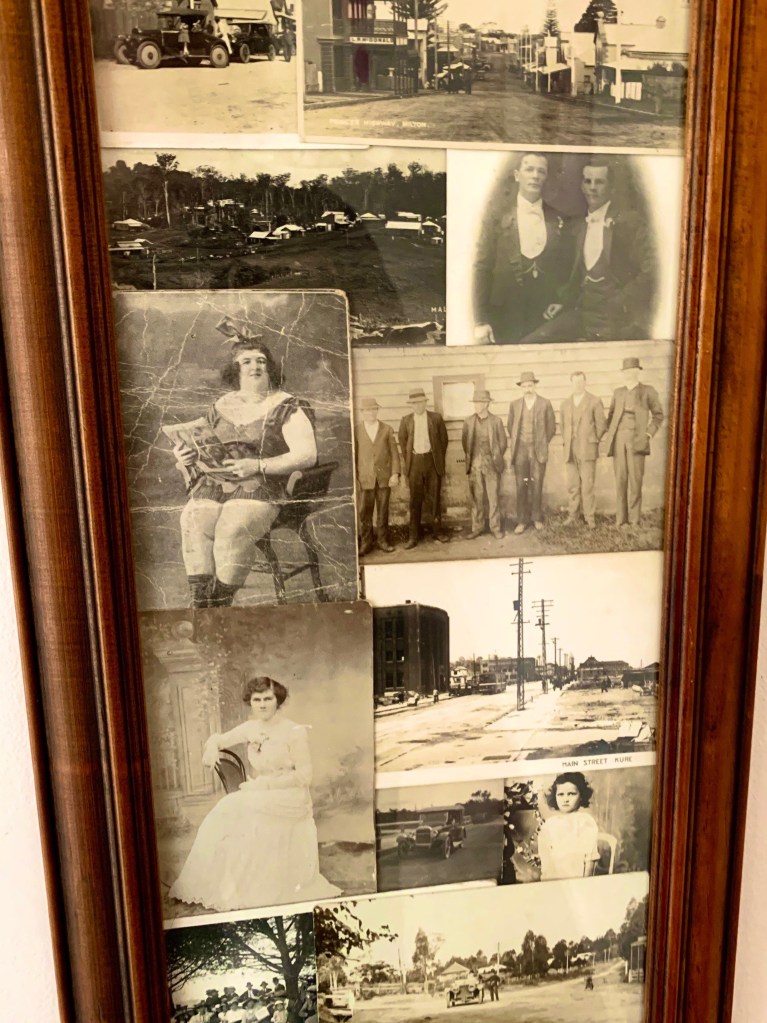 I sit back revelling in the atmosphere, sipping coffee from my Royal Albert bone China cup, as Daniel proudly regales stories of the people in the framed photos on the walls. He has obviously taken an interest in the history of the area. He laughs as he shows me the picture of the rather large showgirl who was somewhat of a celebrity, and it is obvious he is a bit of a romantic, as he has so many photos of local weddings. There is one photo showing a bride wearing a dress so similar to that of my mother.