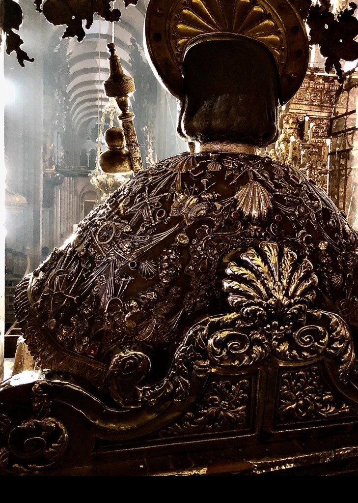 To finish this post, I’m not saying I’m having a miserable time….far from it. I’m loving and making the most of it. The familiarity of Santiago and having friends here makes my time here so precious. Santiago de Compostela is a great place to be, full of energy and history. The stone walls buildings and roads hold many ancient secrets. It’s palpable. Traditions abound, festivals and fiestas continue to keep all this alive, and well, the cathedral has to be seen to believe. It is so magnificent, so huge! I’m astonished at how long the line is to go hug the effigy of St James ! They have put up barriers to steer us like cattle in a cattle race.
