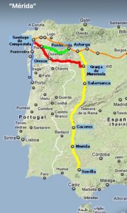 Up early, out for breakfast and then off to the bus station to move onward and upward to Merida. This took about 2.5 hours and then after finding our rather colourful accommodation, (my room is. Bright purple), we hit the streets to look at more roman ruins.
