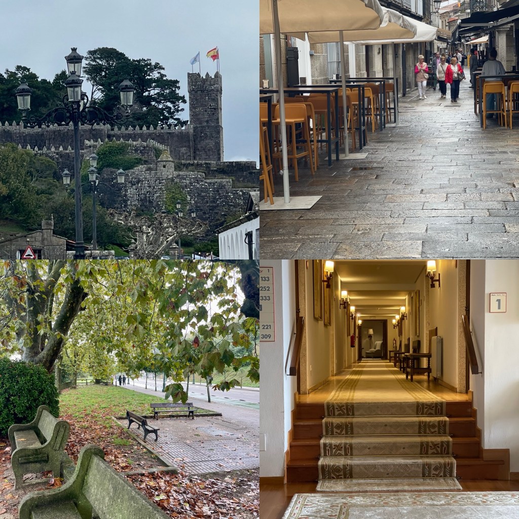I sat out on the terrace in the afternoon and joined a couple of Americans with an Aperol spritz. Cool gentle breeze, sunshine and great conversation. They are pilgrims having a posh break here at the Parador. I’ve arranged to meet them when they get to Santiago. Not long after this some thick heavy fog rolled in and we watched our view disappear into oblivion. It was so fast.