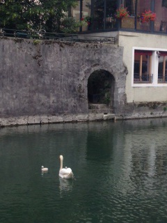 I'm staying in a hotel right on the canal. From my room, I can see ducks on the water, and a white swan with her signets. Little Ashleigh would be impressed! The water is so crystal clear that the pebbles on the bottom are easily visible, and it is full of trout. They are about …